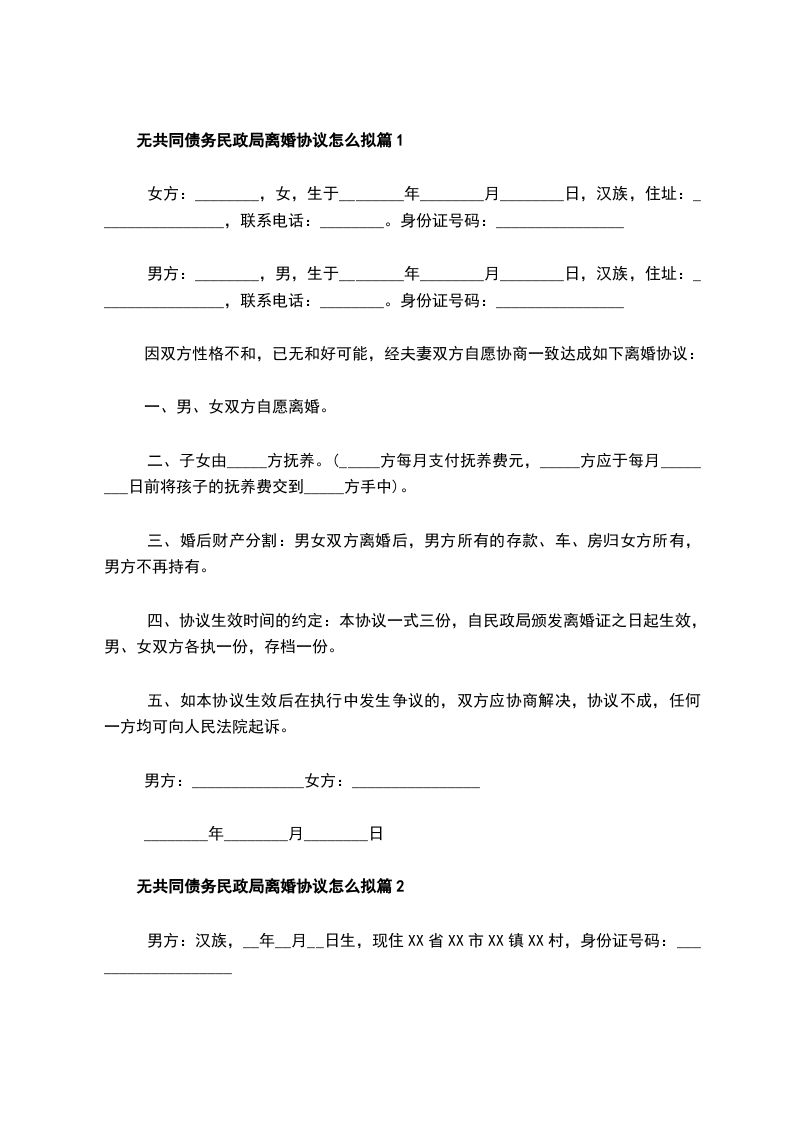 1、甲乙双方确认在婚姻关系存续期间没有发生共同债务。
