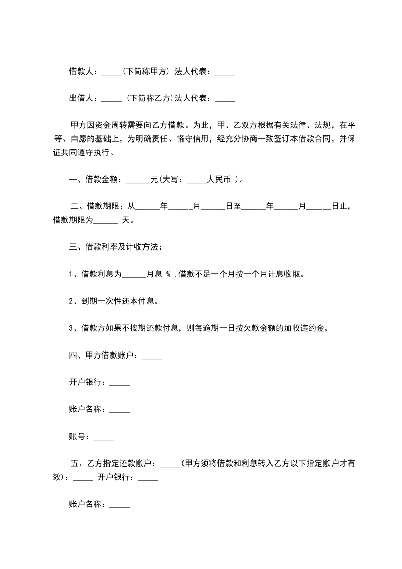 五、乙方指定还款账户:_____(甲方须将借款和利息转入乙方以下指定账户才有效):_____ 开户银行:_____