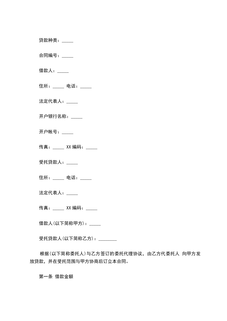 根据(以下简称委托人)与乙方签订的委托代理协议,由乙方代委托人 向甲方发放贷款,并在受托范围与甲方协商后订立本合同。