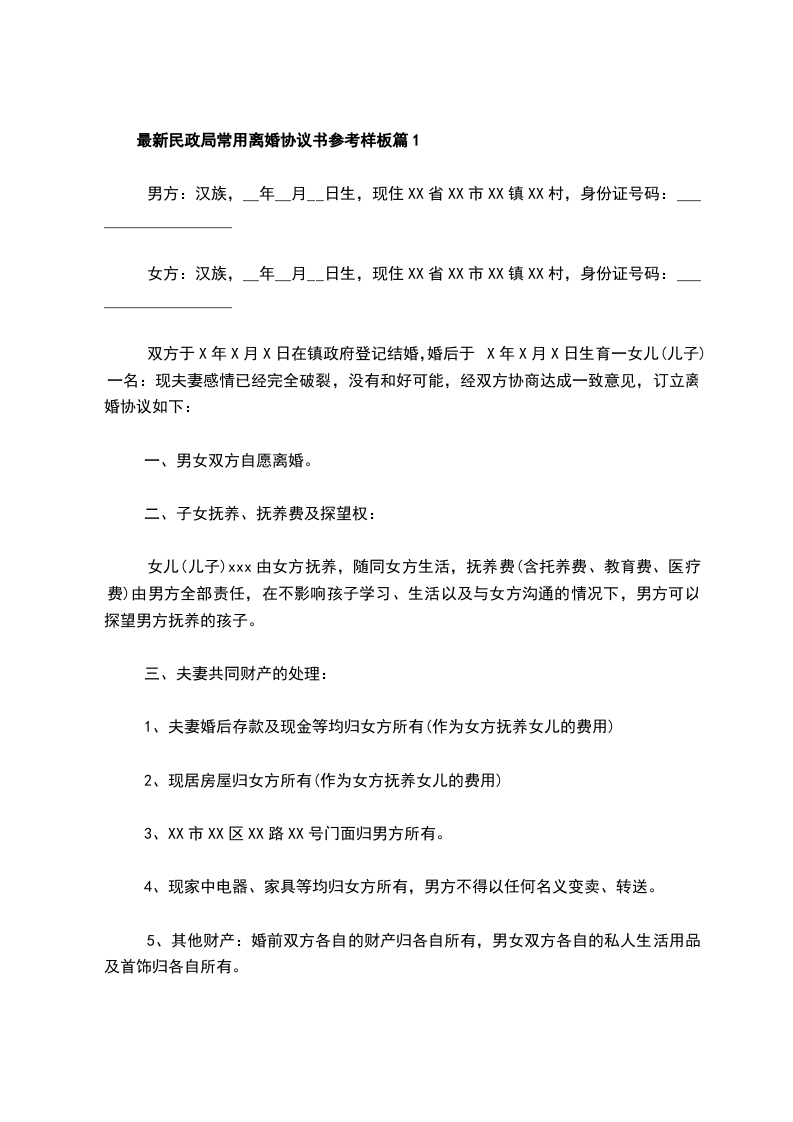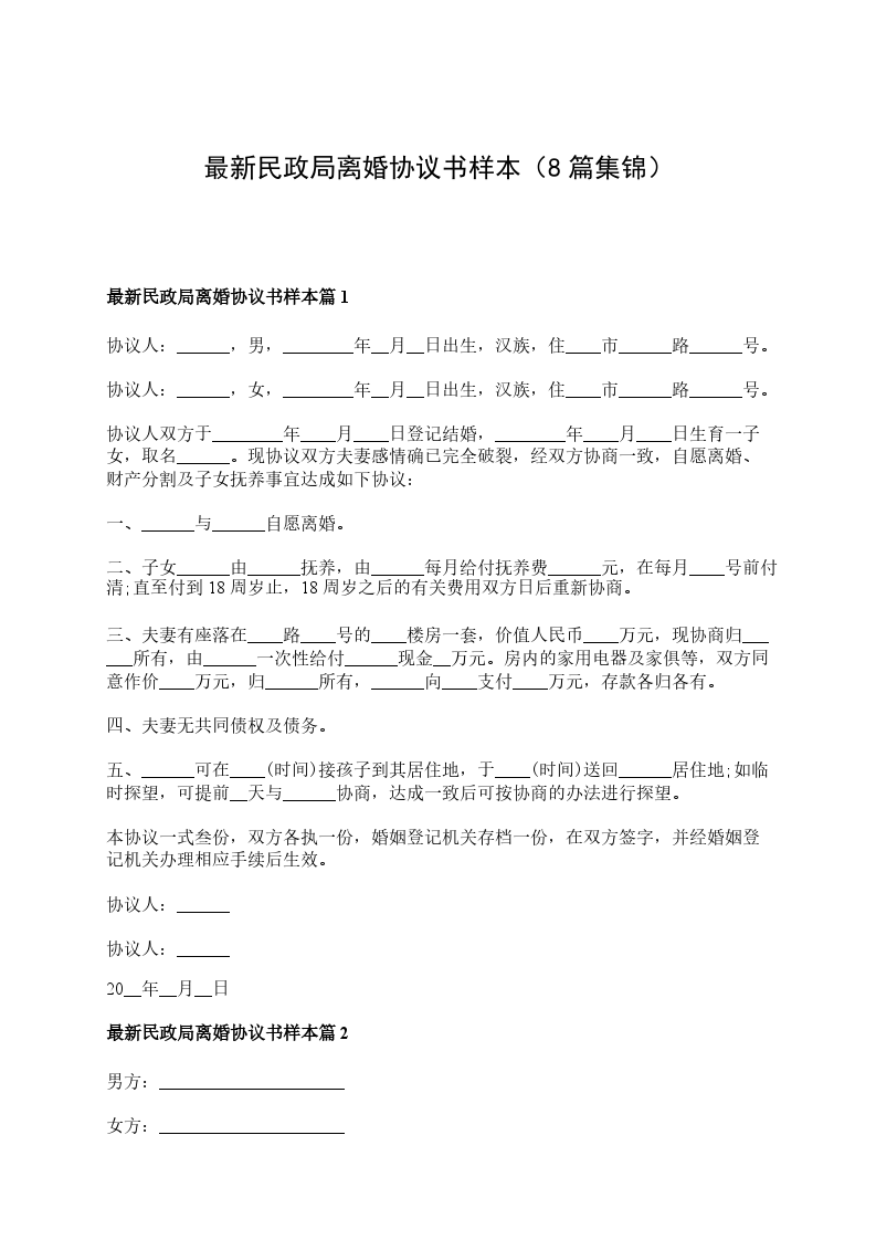 八、本协议一式三份,男、女双方各执一份,婚姻登记机关存档一份。
