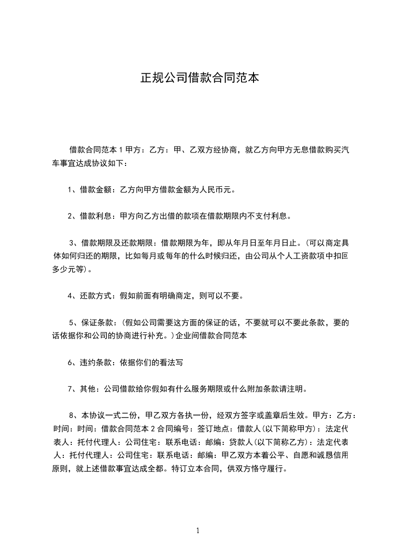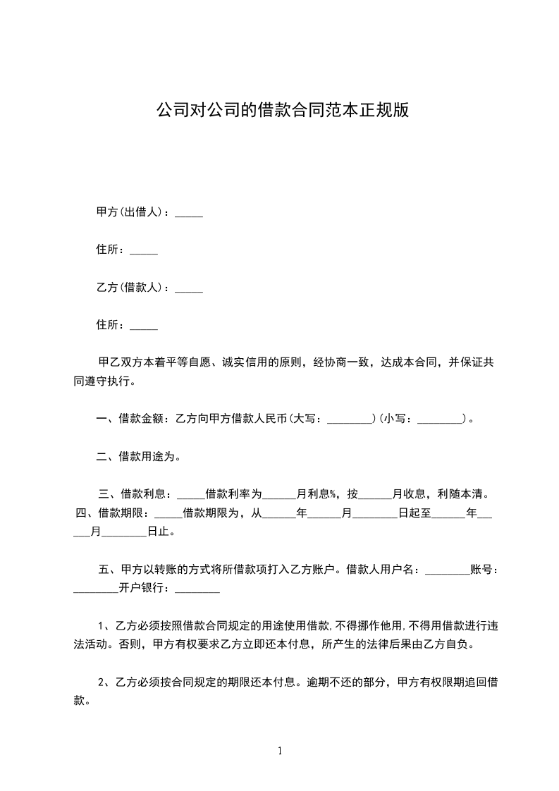 一、借款金额:乙方向甲方借款人民币(大写:________)(小写:________)。