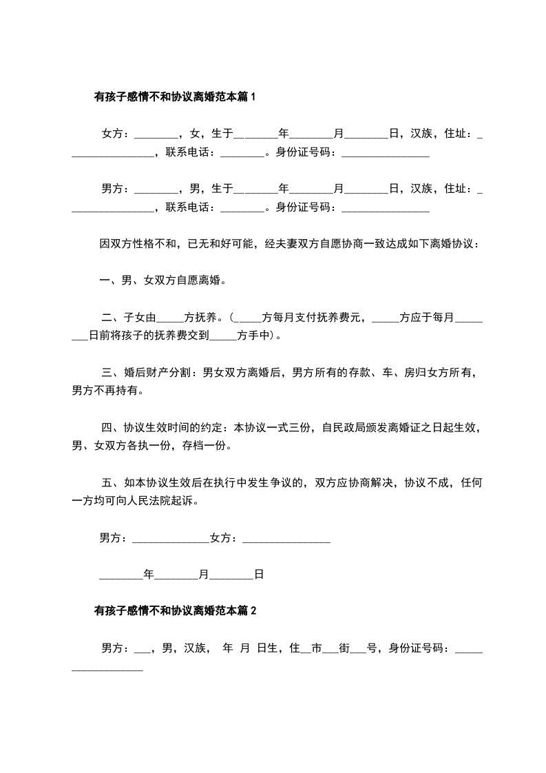 双方于 __年__月__日在__市__城区(县)人民政府的民政部门登记结婚,现因______(注:指感情不和等)的原因,自愿离婚,经双方协商一致,对有关事项,依《民法典》的规定达成如下自愿离婚协议书: