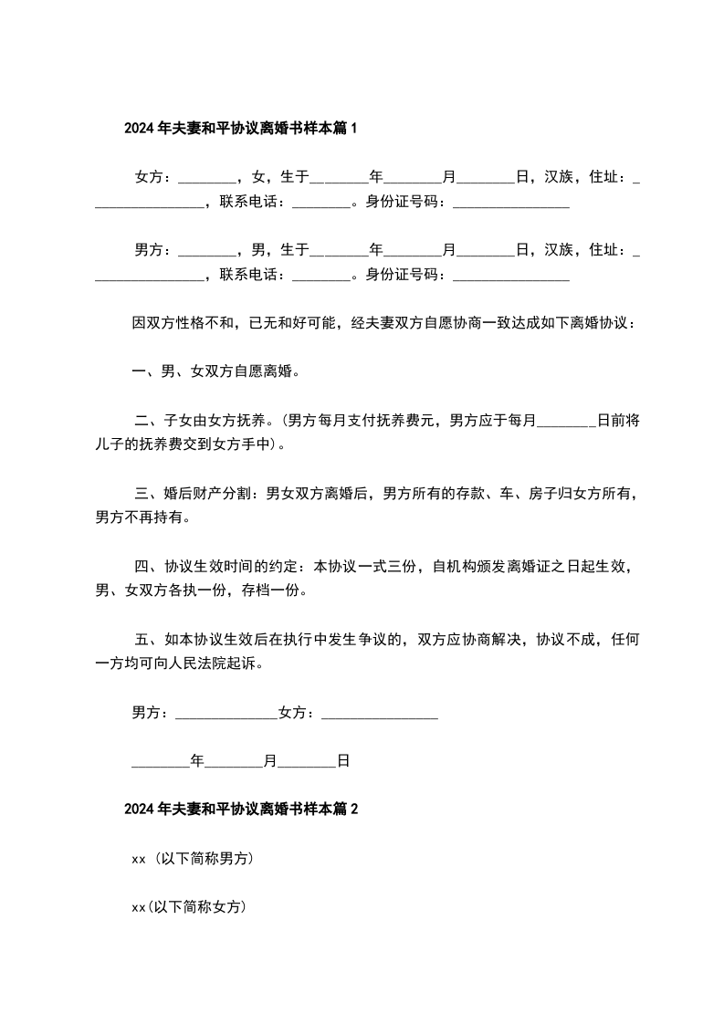 因双方性格不和,已无和好可能,经夫妻双方自愿协商一致达成如下离婚协议: