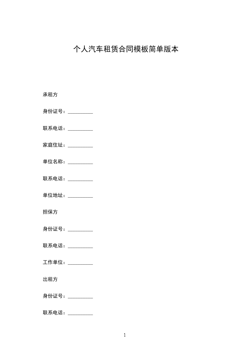 出租方:_______________ 承租方签字:_____