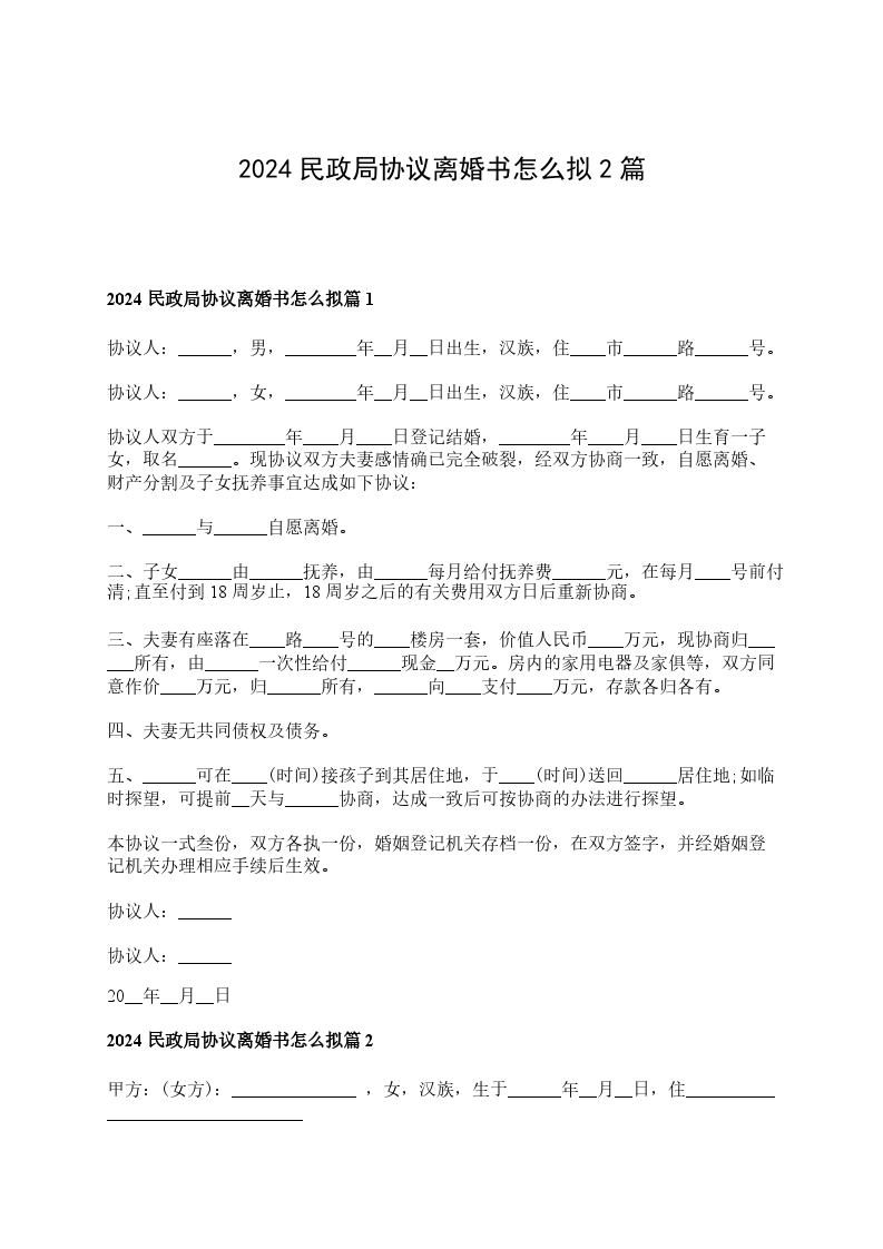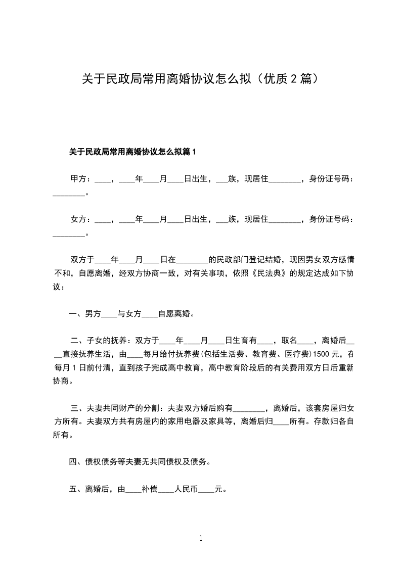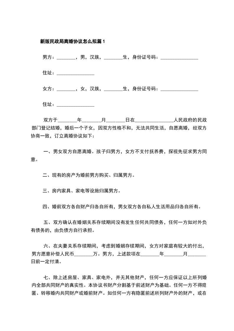 新版民政局离婚协议怎么拟篇2