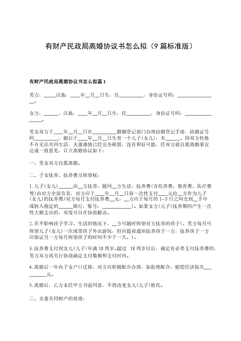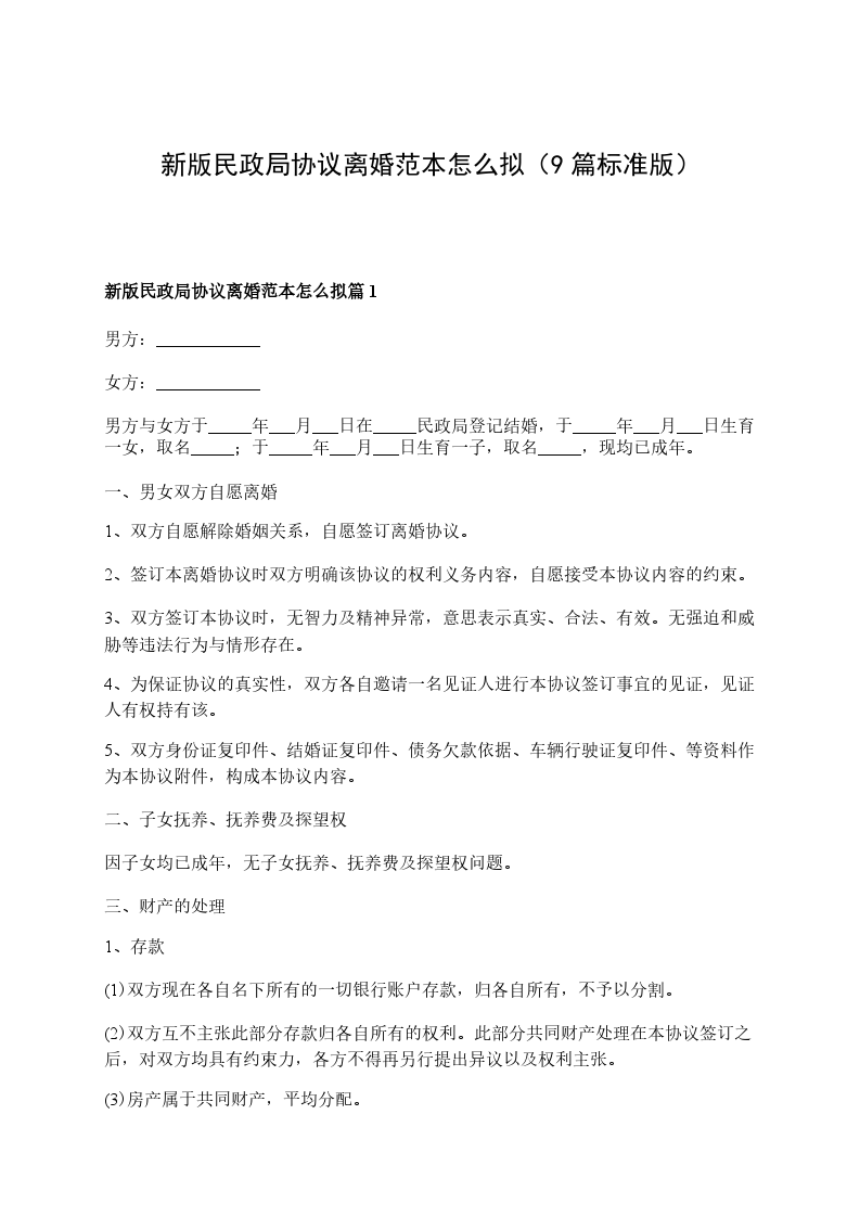 关于民政局离婚协议书怎么拟篇9