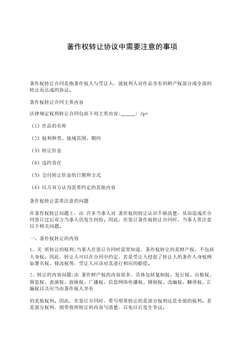 著作权转让需要注意的问题