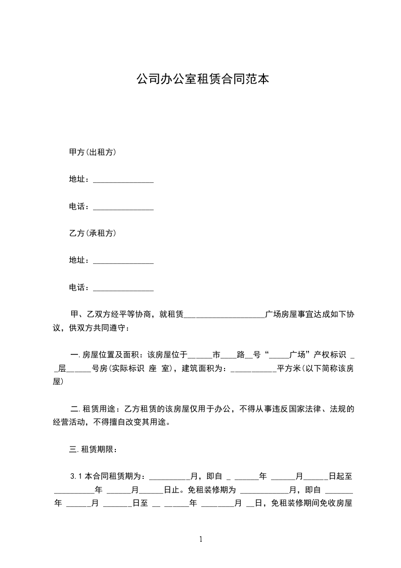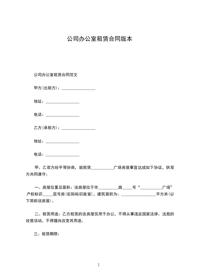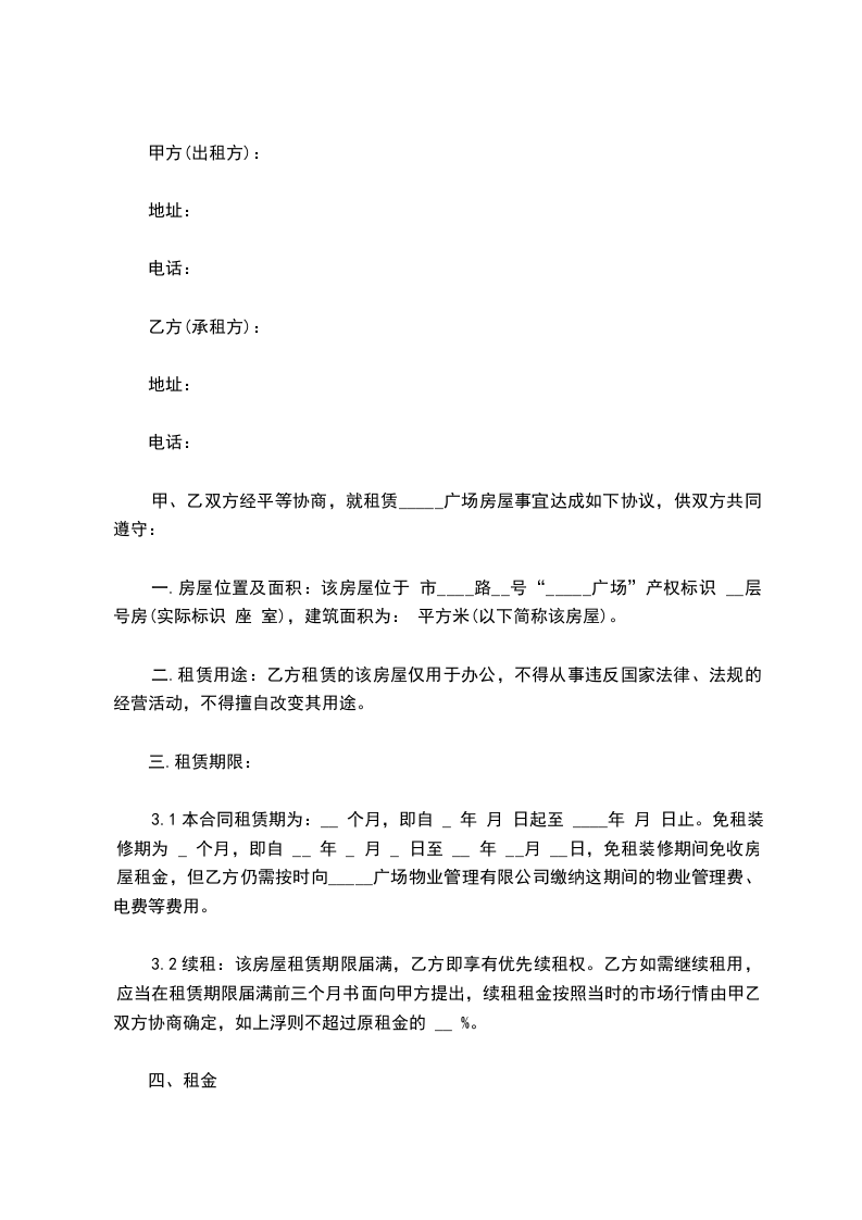 甲、乙双方经平等协商,就租赁____________________广场房屋事宜达成如下协议,供双方共同遵守: