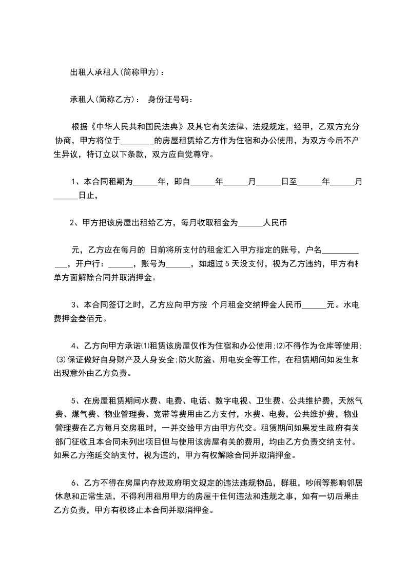 二.租赁用途:乙方租赁的该房屋仅用于办公,不得从事违反国家法律、法规的经营活动,不得擅自改变其用途。