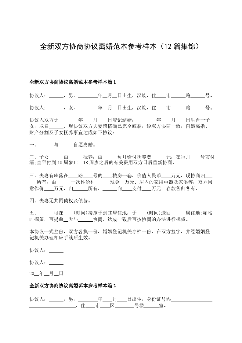 因_致使夫妻感情确已破裂,已无和好可能,现经夫妻双方自愿协商达成一致意见,订立离婚协议如下: