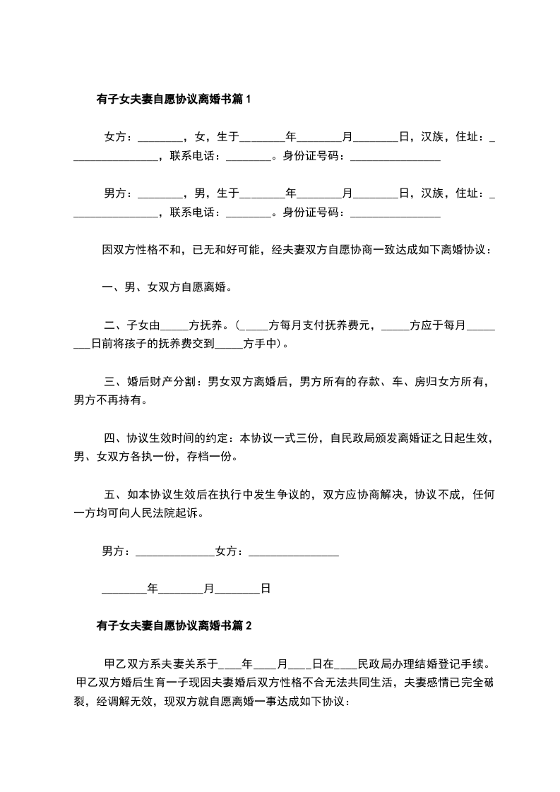 一、男、女双方自愿离婚。
