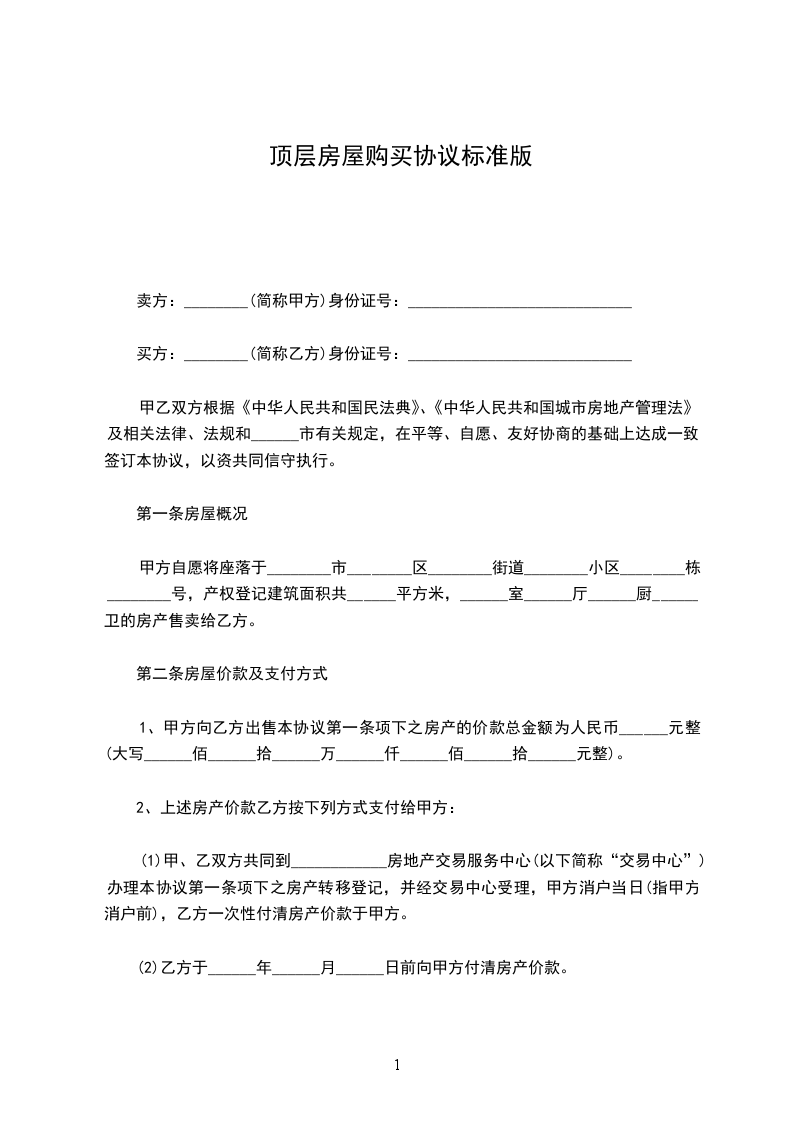 1、甲方向乙方出售本协议第一条项下之房产的价款总金额为人民币______元整(大写______佰______拾______万______仟______佰______拾______元整)。