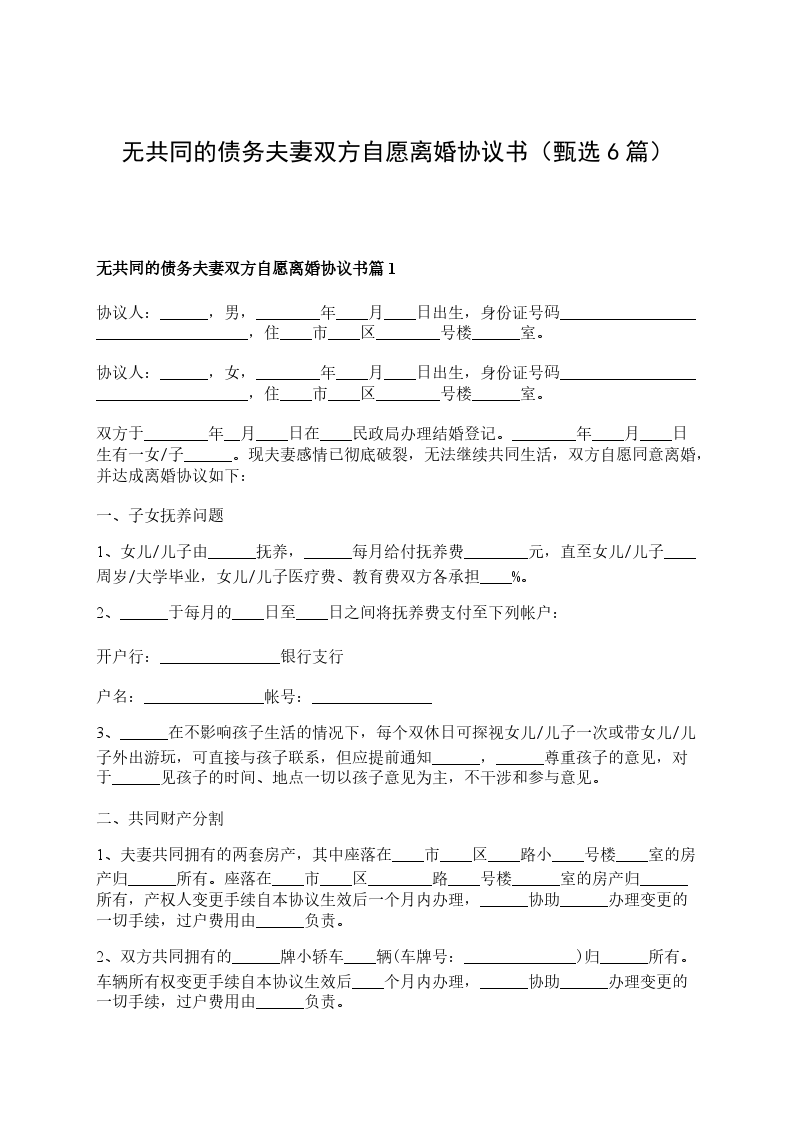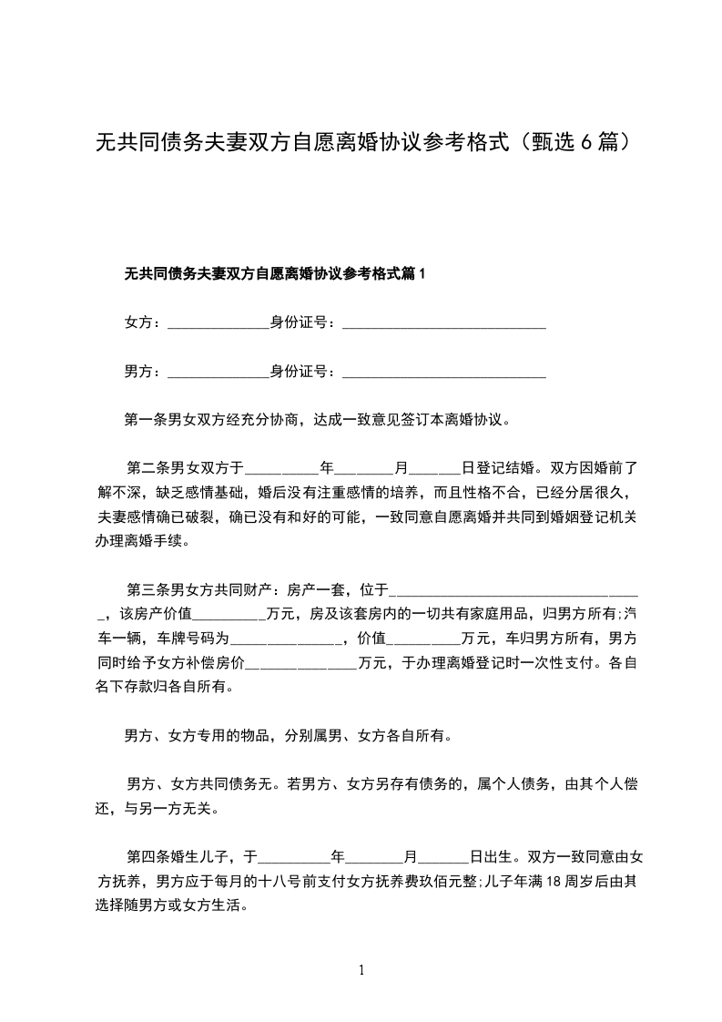 无共同的债务夫妻双方自愿离婚协议书篇6