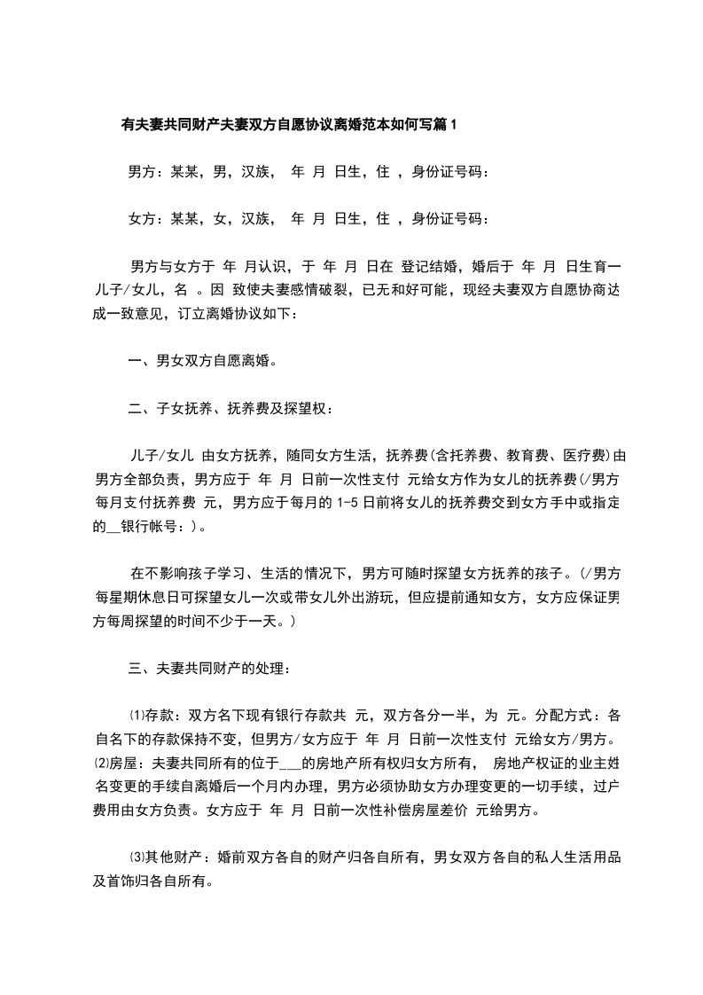 无共同的债务夫妻双方自愿离婚协议书篇5