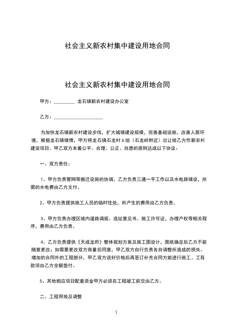 社会主义新农村集中建设用地合同