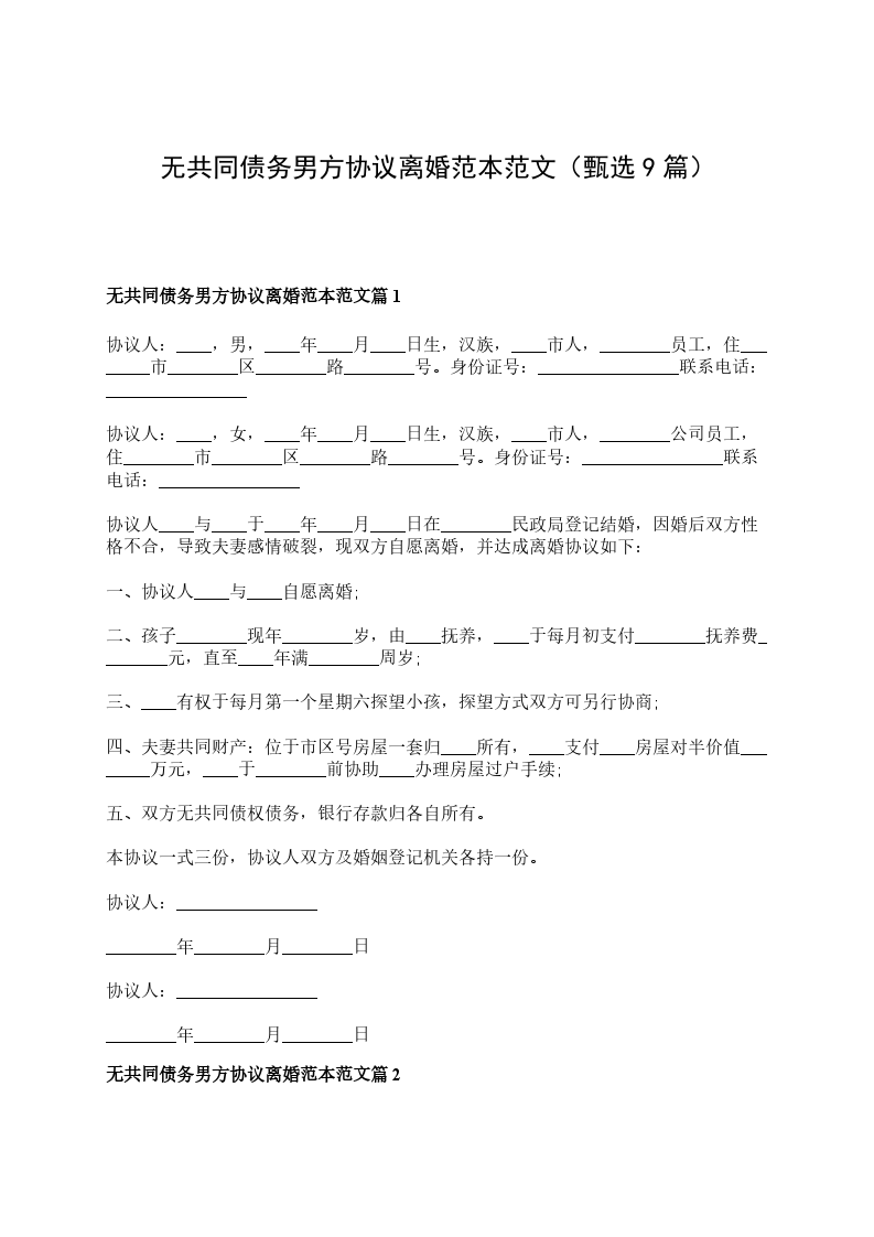(1)男女双方确认在婚姻关系存续期间无共同债务。