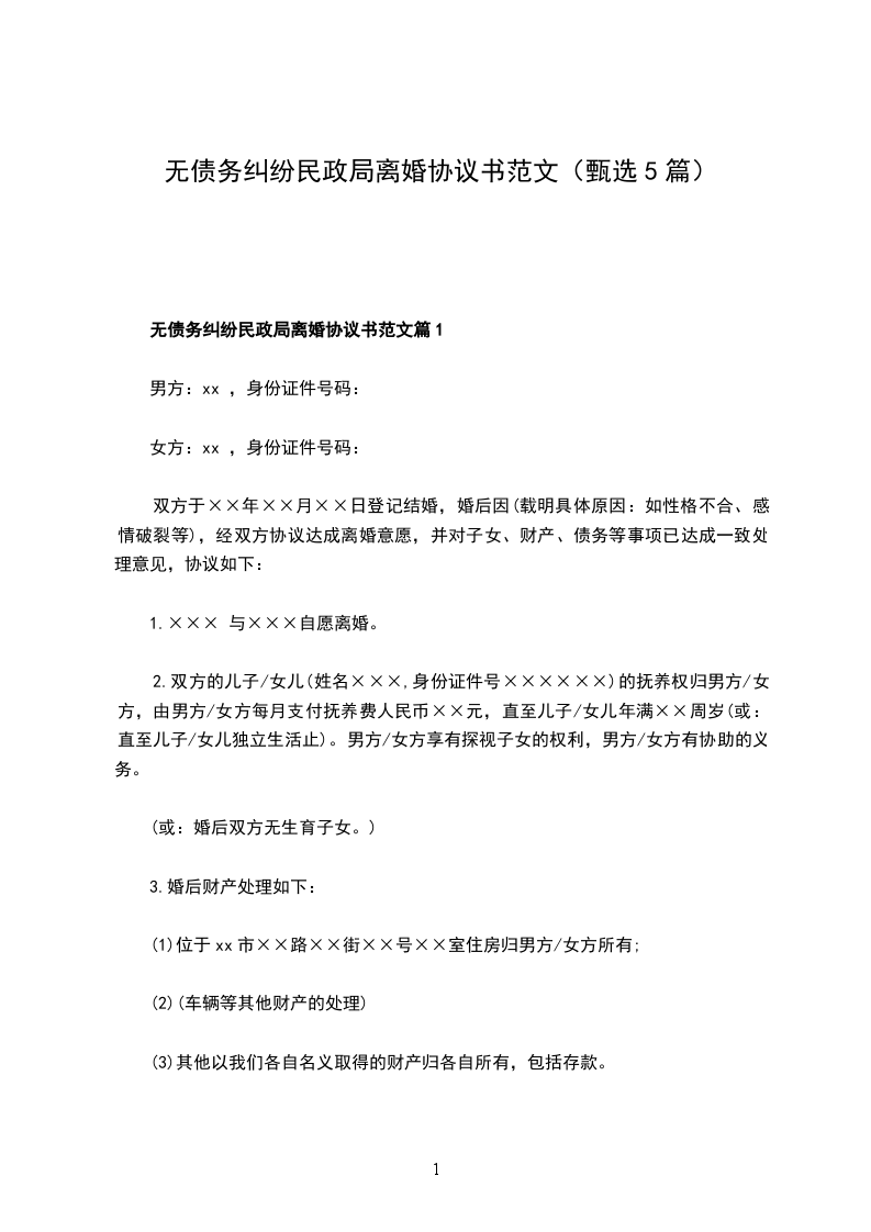 1、甲乙双方确认在婚姻关系存续期间无共同债务;