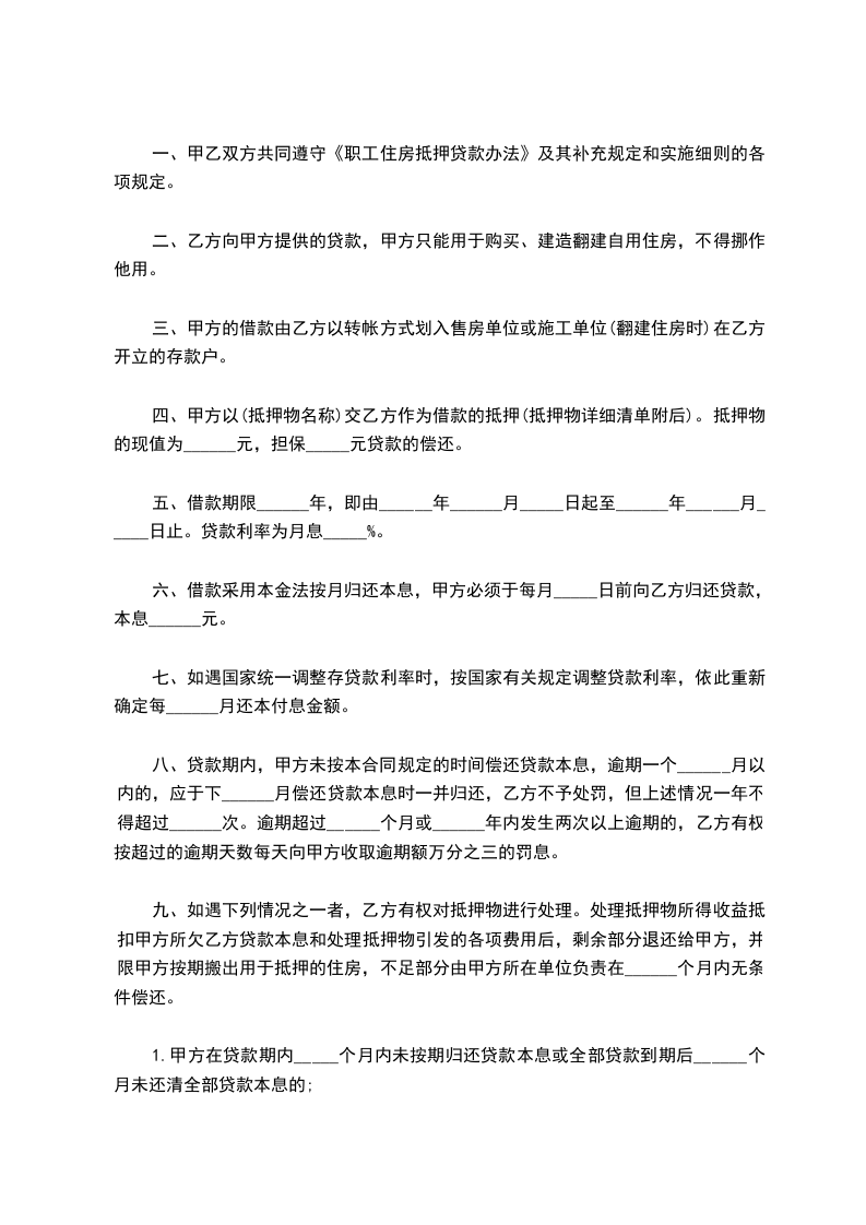 一、甲乙双方共同遵守《职工住房抵押贷款办法》及其补充规定和实施细则的各项规定。