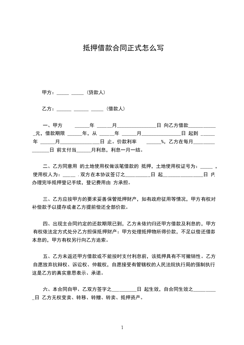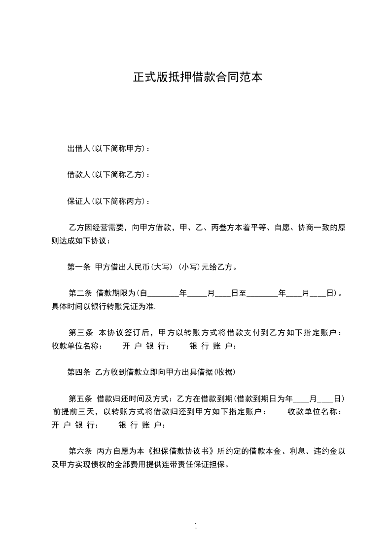 四、甲方以(抵押物名称)交乙方作为借款的抵押(抵押物详细清单附后)。抵押物的现值为______元,担保_____元贷款的偿还。