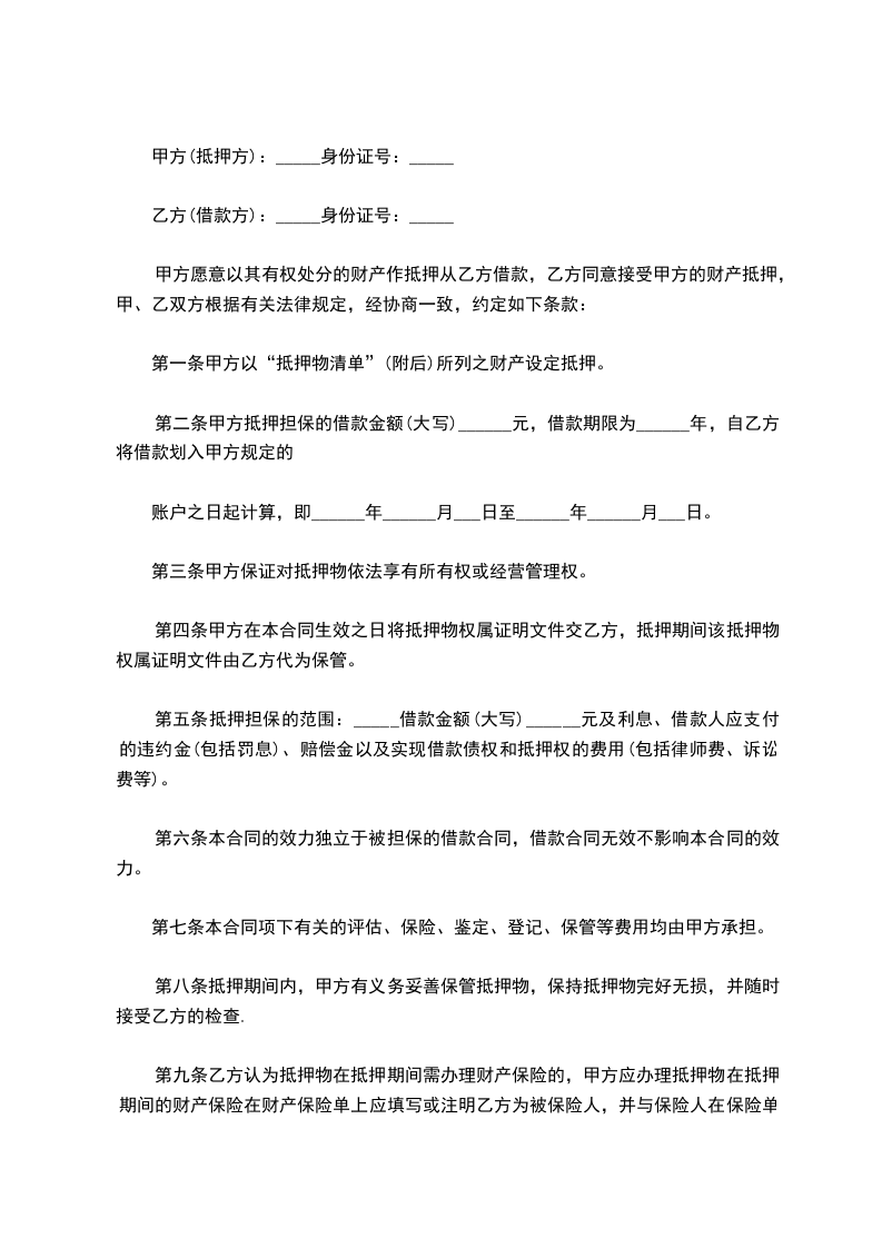 十二、甲方需对抵押物办理保险,保险单交乙方保管,抵押物如遇意外毁损,甲方应负责立即通知保险公司和乙方,保险公司的赔偿金应首先用于归还借款本息。若保险赔偿金不足以归还借款本息的,不足部分仍由甲方负责归还。