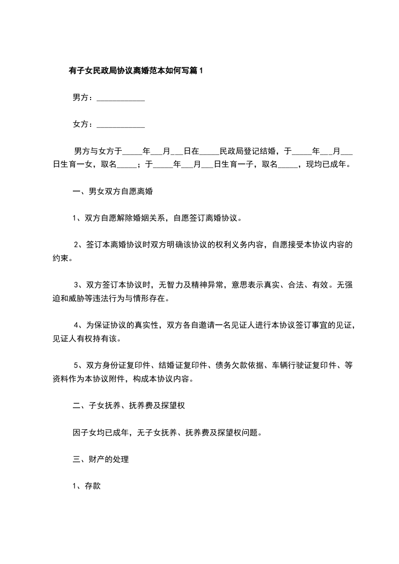 有子女民政局协议离婚范本如何写篇1