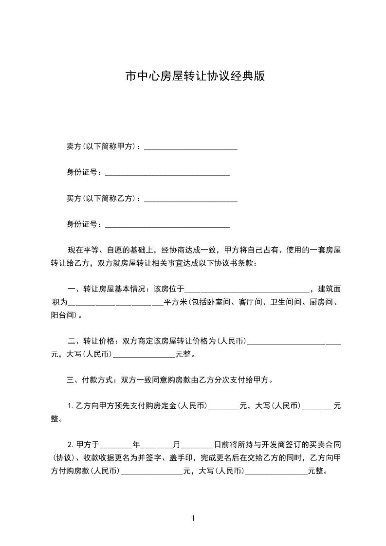 第二条成交价格。上述房产的交易价格为:单价:人民币________元平方米,总价:人民币___________元整(大写:____佰____拾____万____仟____佰____拾____元整)。本合同签定之日,买方向卖方支付人民币__________元整,作为购房定金。