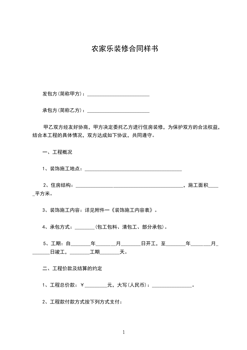 1、工程总价款:¥_________元,大写(人民币):________________。