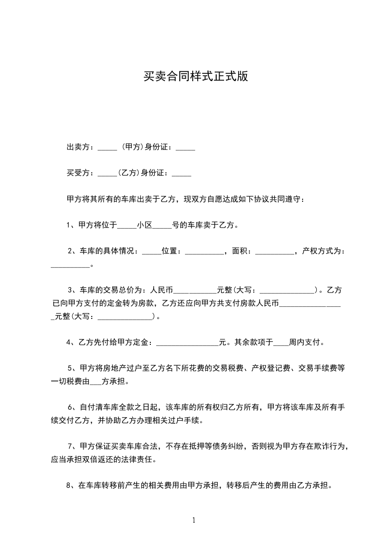 1、甲方将位于_____小区_____号的车库卖于乙方。