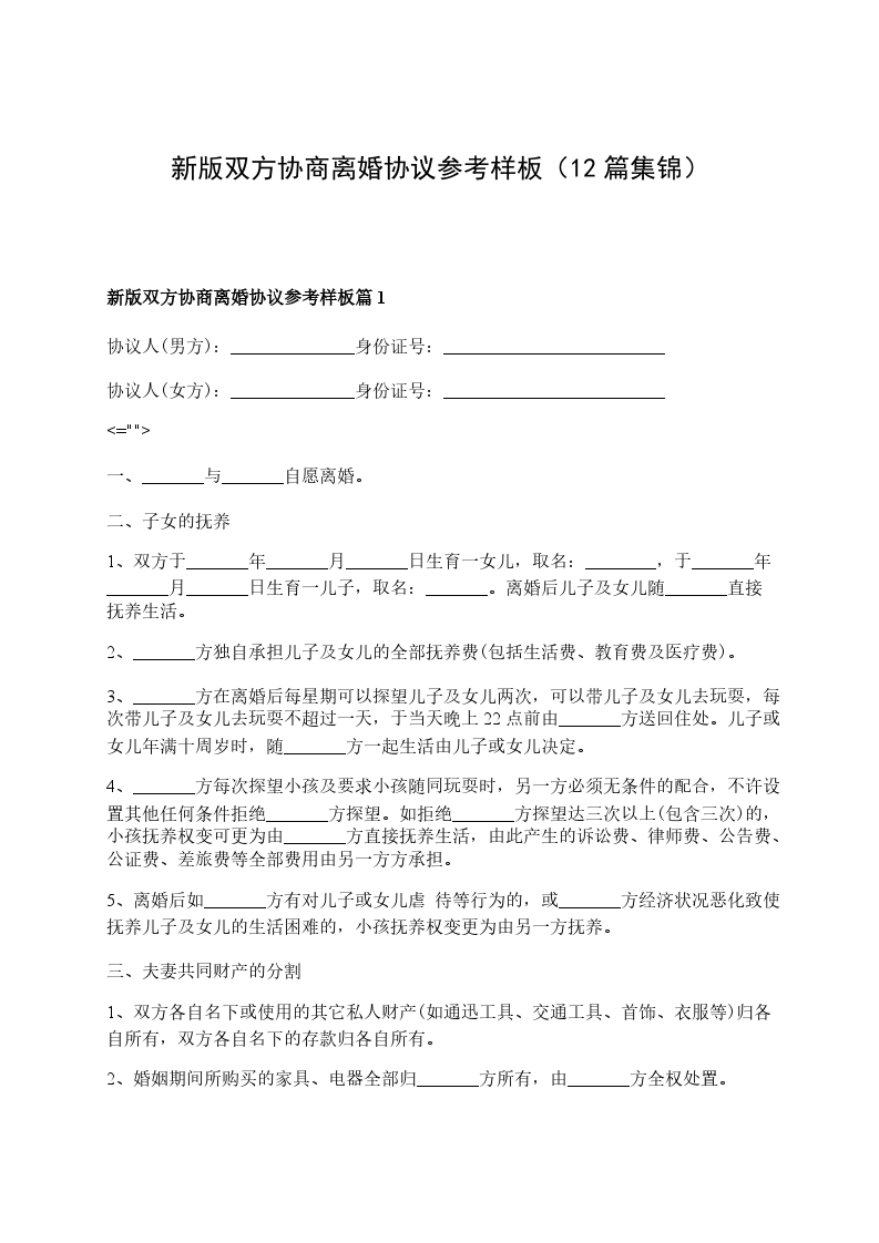 新双方协商离婚协议书参考样本篇12