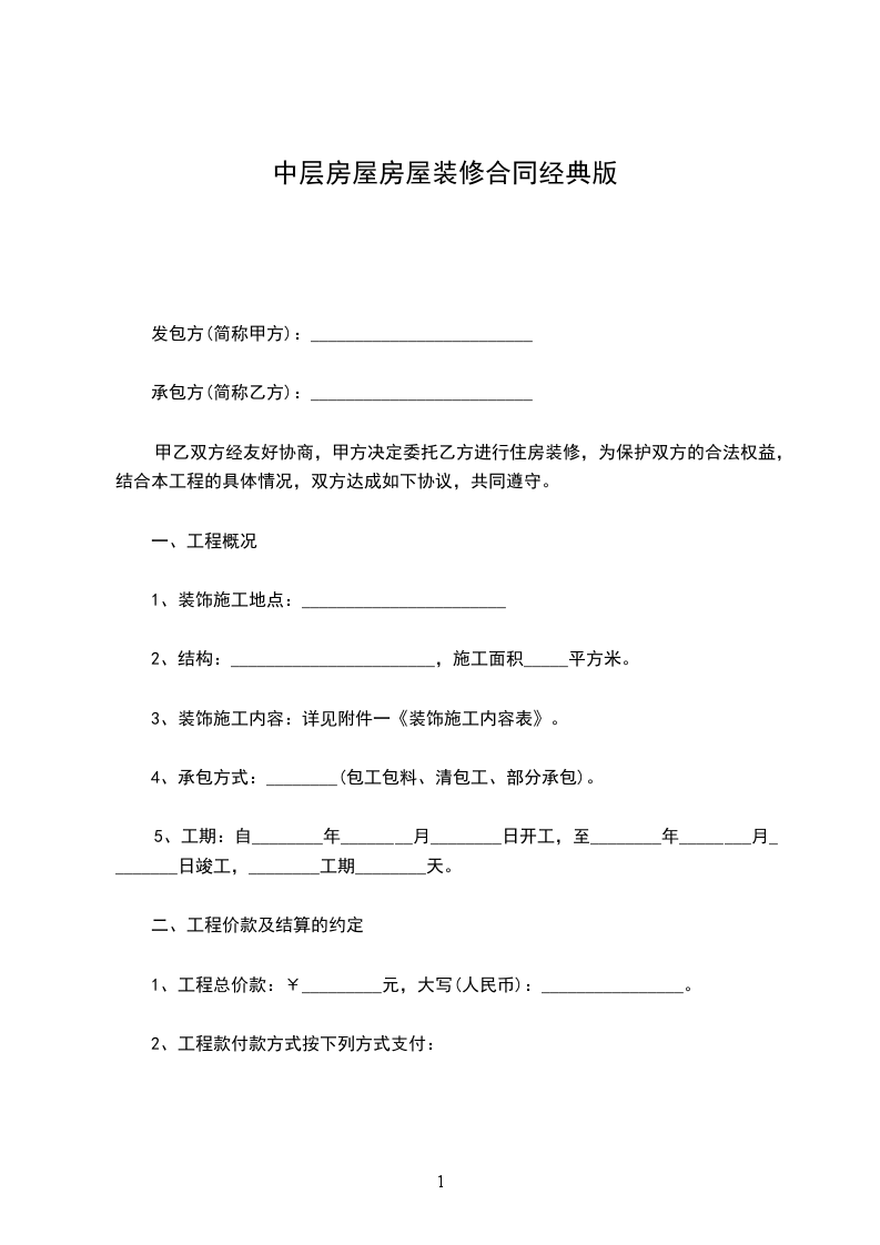 1、合同签定后,甲方即付给乙方工程款总造价的______%。
