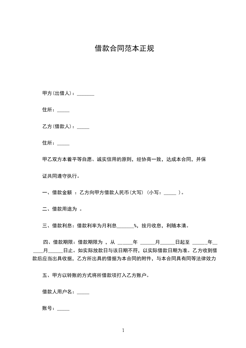 一、借款金额 :乙方向甲方借款人民币(大写) (小写:_____ )。