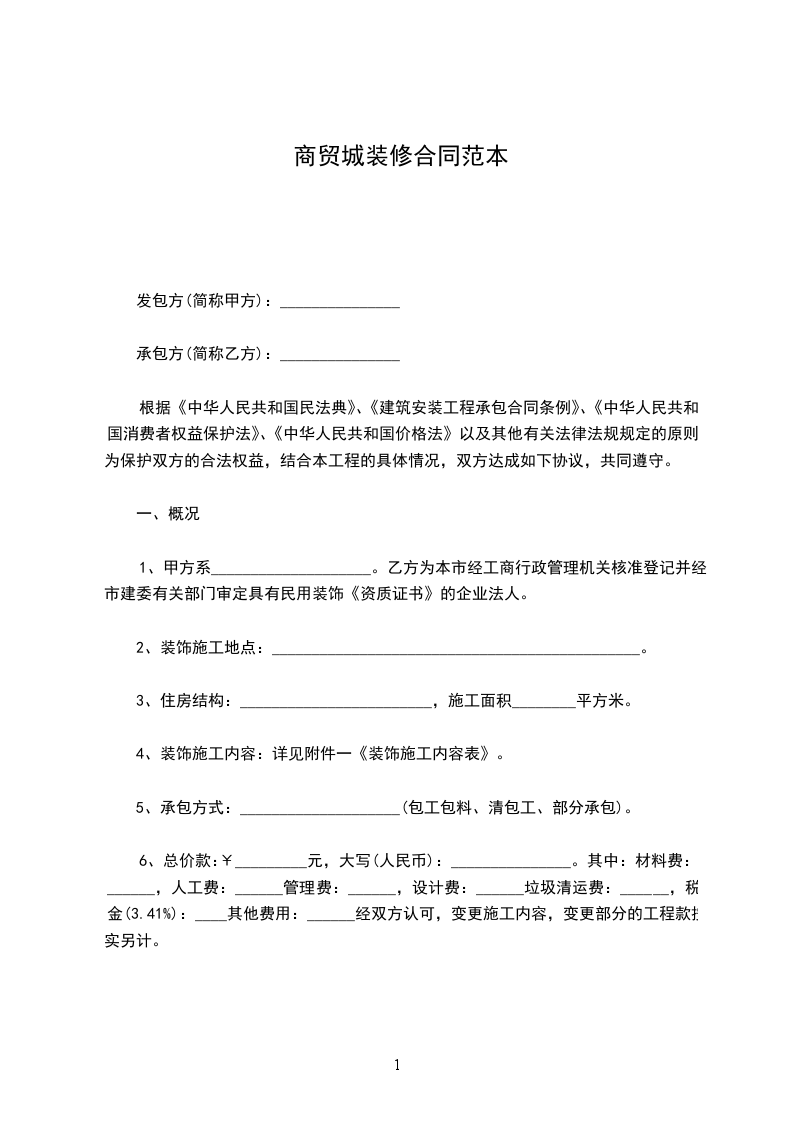 五、装修价款:________________装修总价款人民币______元。总价款包含设计费、材料款、人工费、施工清运费、装卸费、税费等全部费用。