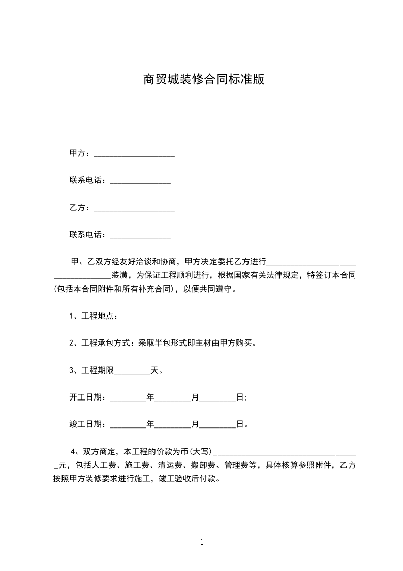 5.乙方所有装修改造工程必须在甲方规定期间内完成,否则每逾期一日应交纳违约金(日租的两倍)______元,租期不顺延。