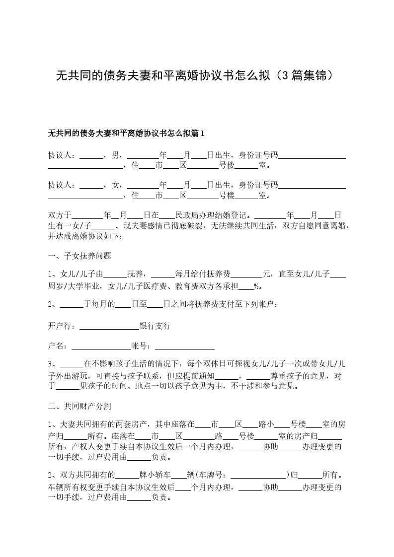 八、本协议一式三份,双方各执一份,婚姻登记机关存档一份。