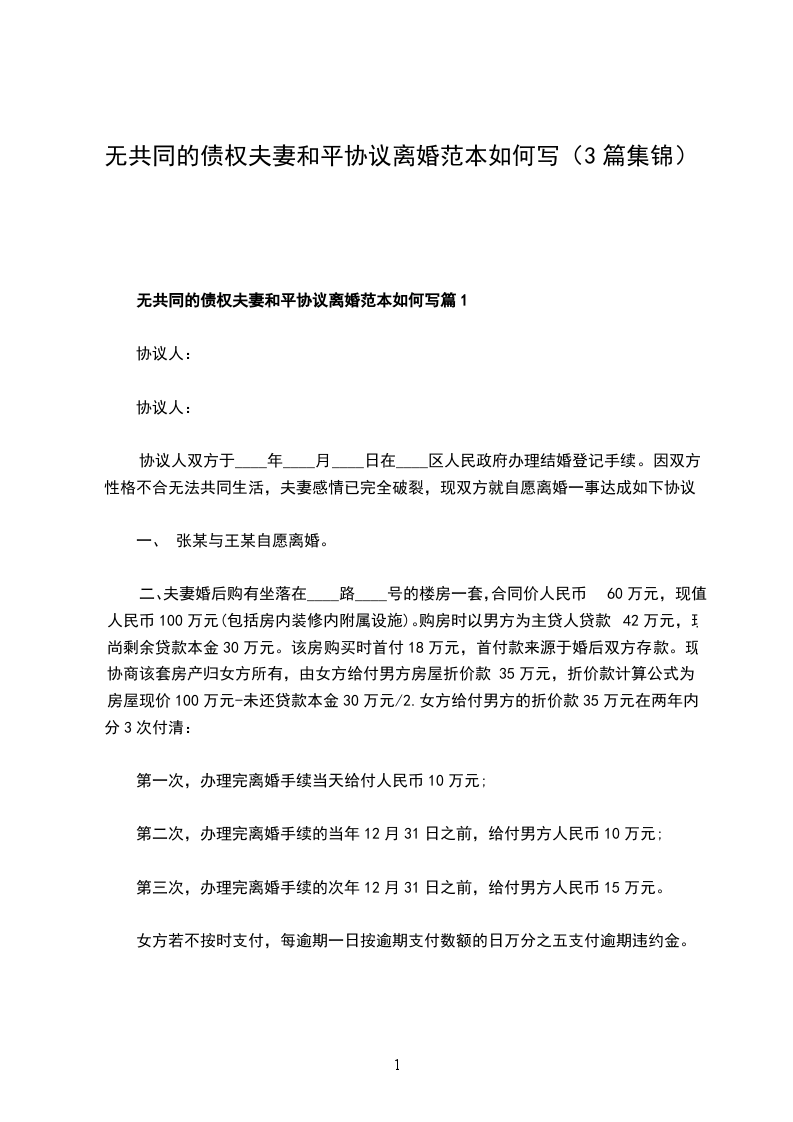 男方与女方于_____年___月认识,于_____年___月___日在___登记结婚,婚后于_____年___月___日生育一儿子/女儿,名______。因_____________致使夫妻感情确已破裂,已无和好可能,现经夫妻双方自愿协商达成一致意见,订立离婚协议如下: