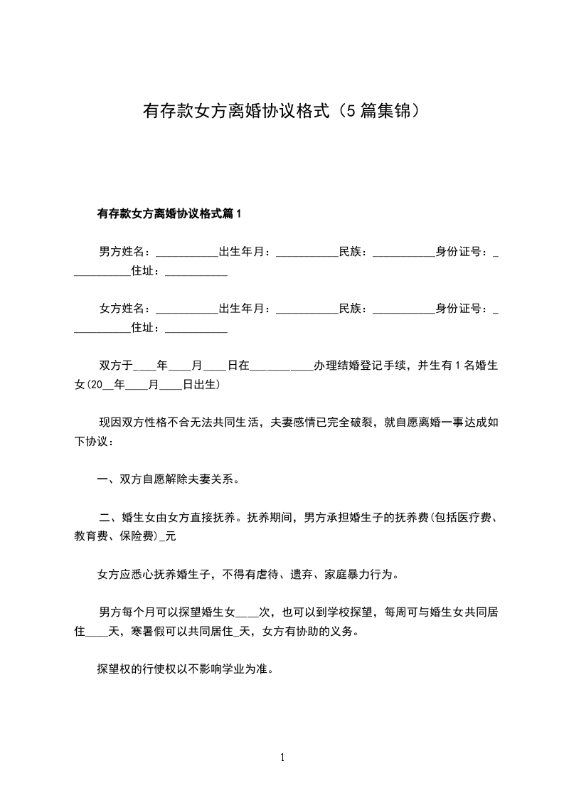1、 存款:双方确认共同存款 元人民币(大写: ),双方约定于___年___月___日前,甲方分得 元人民币(大写: ),乙方分得 元人民币(大写:);