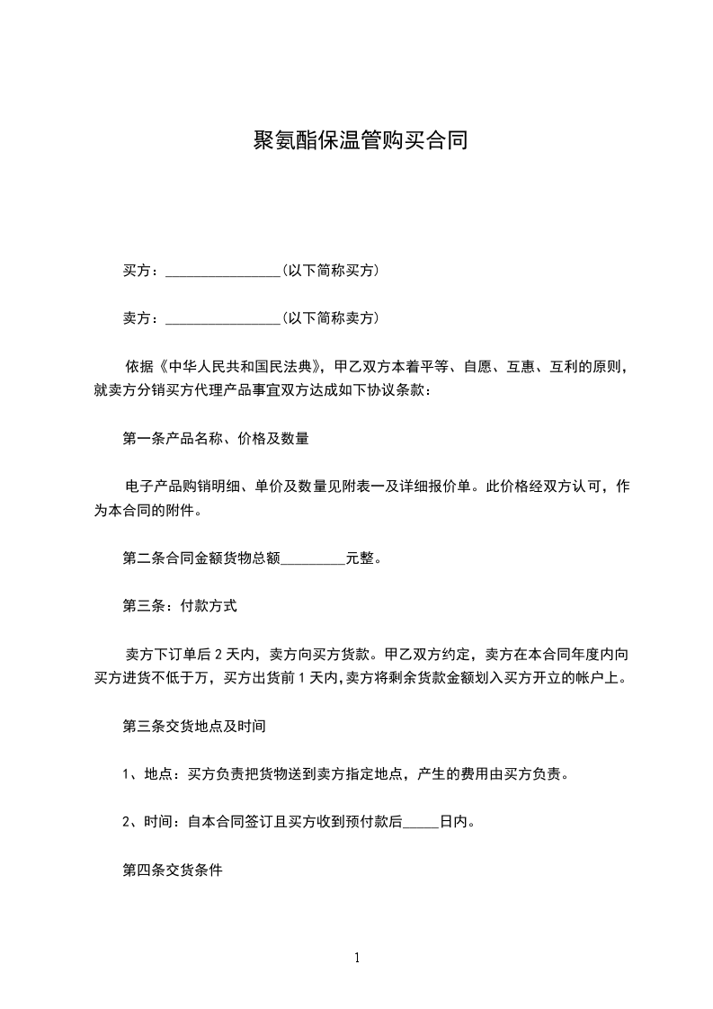 二、本合同有效期为一年,自___年___月___日生效,至___年___月___日止,其效力及于有效期内乙方和甲方有关购买和出售货物的所有协议(包括订单和附件)。