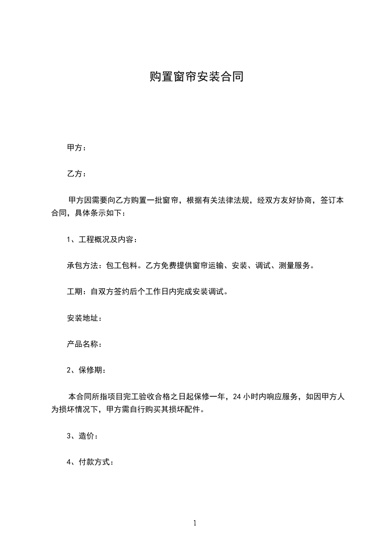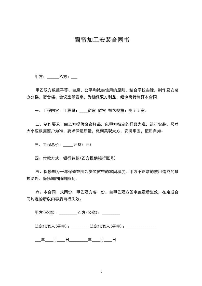 赫章县安乐溪乡初级中学窗帘安装合同