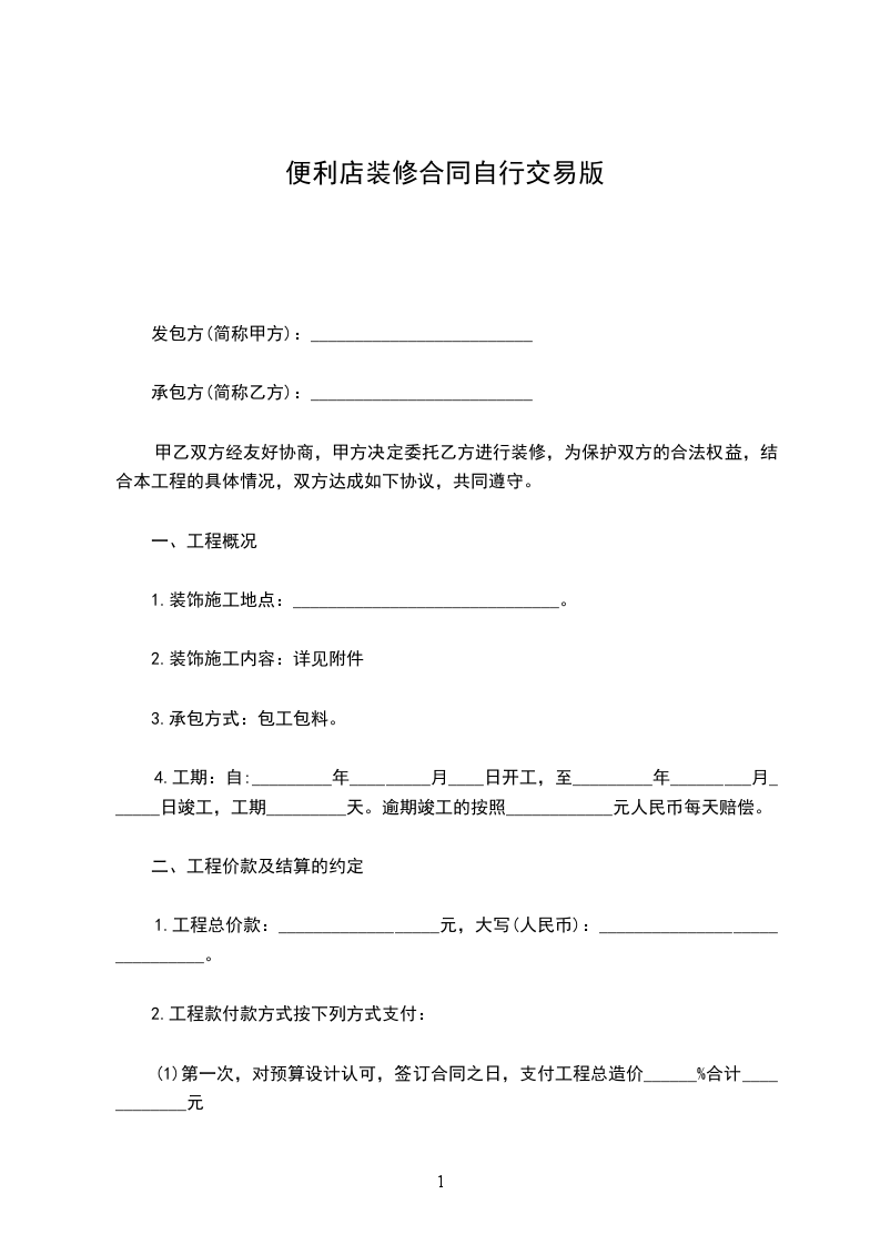 (1)第一次,对预算设计认可,签订合同之日,支付工程总造价______%合计____________元