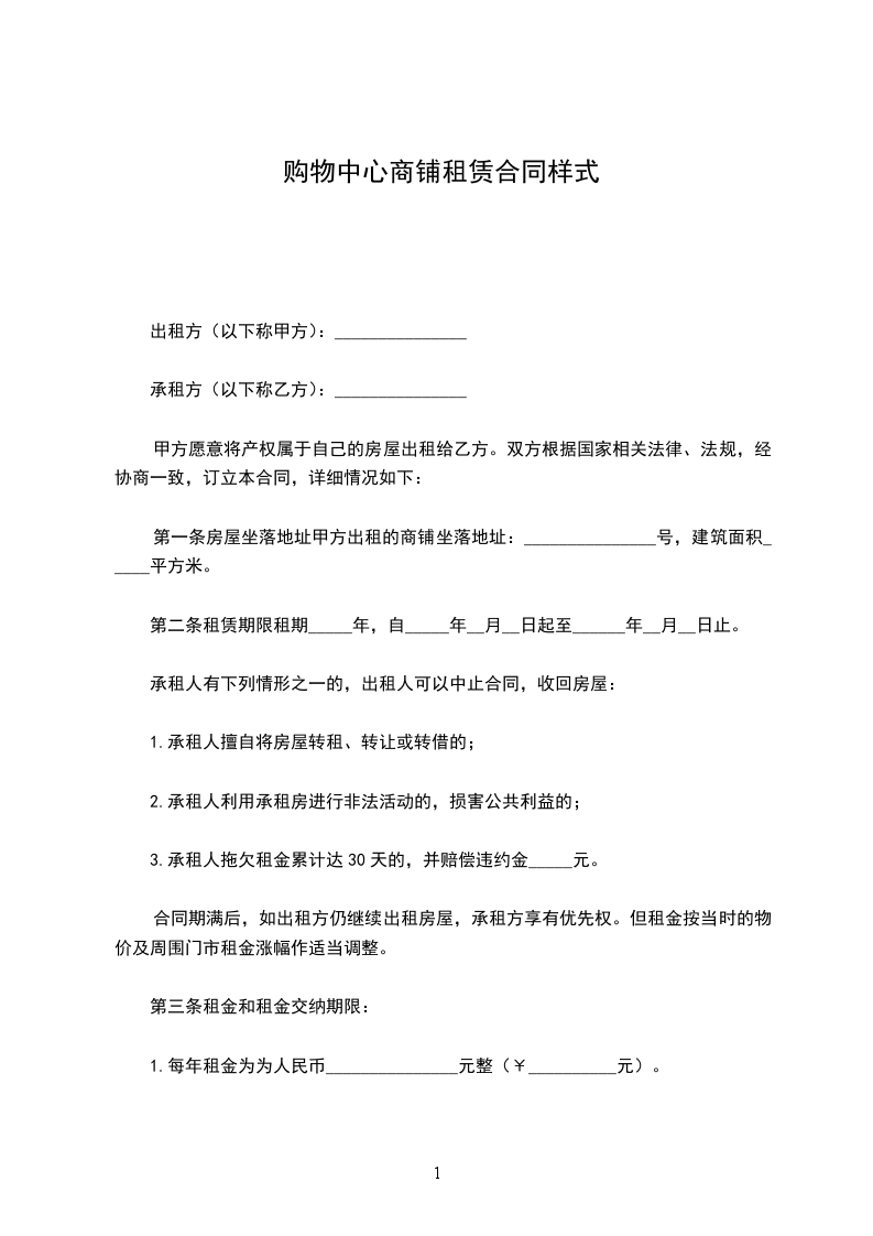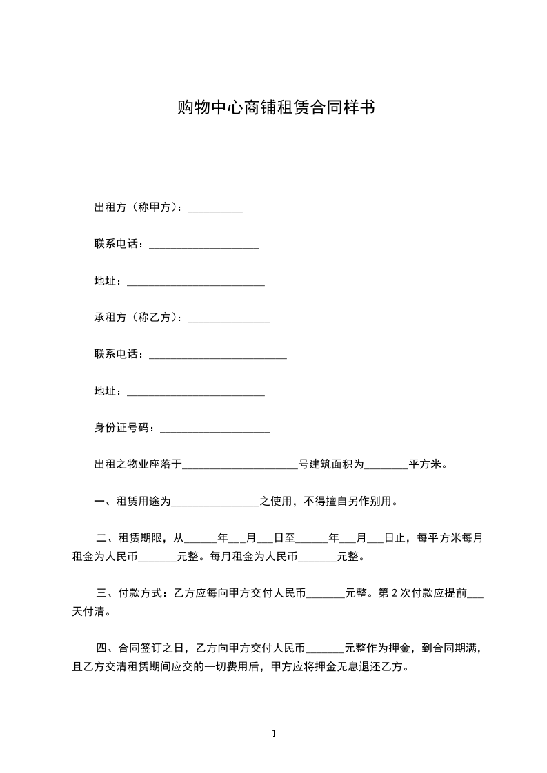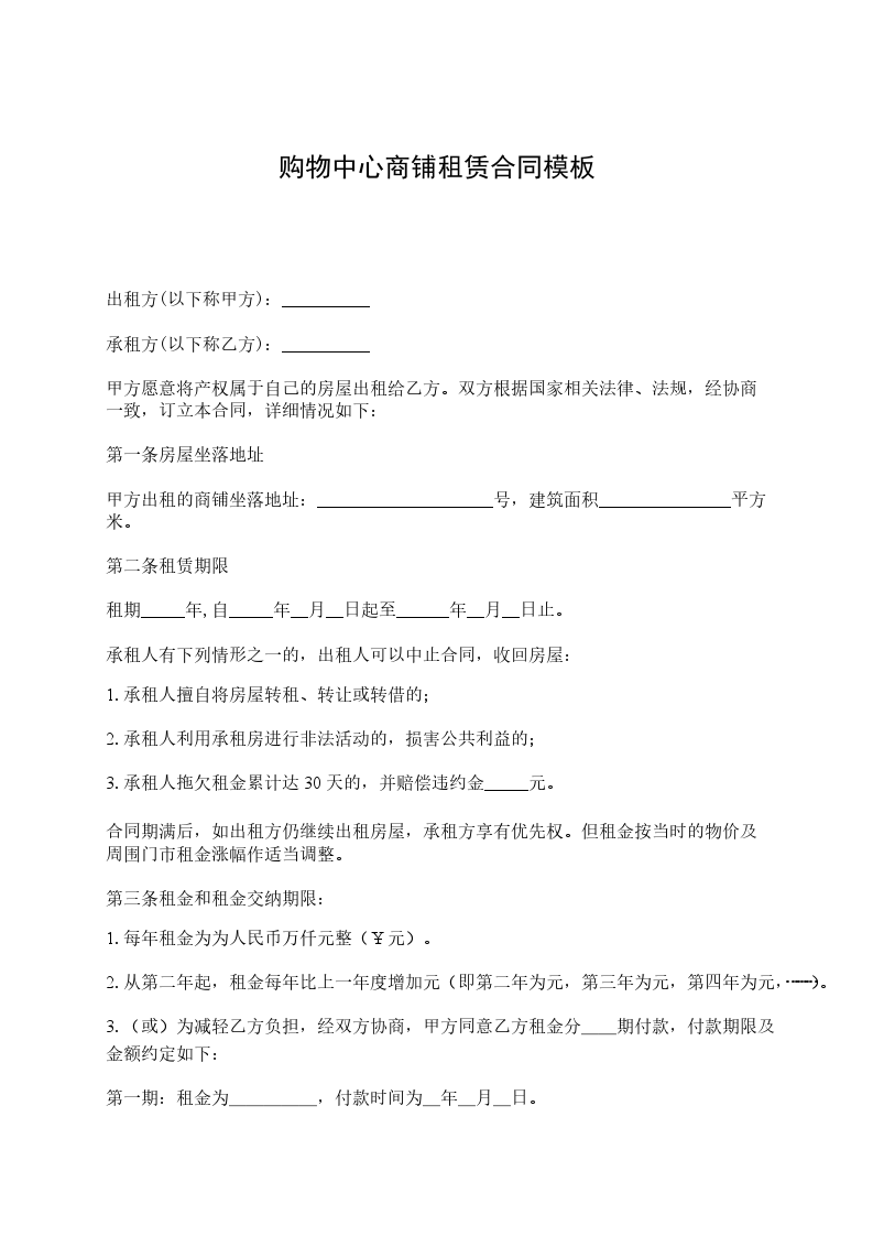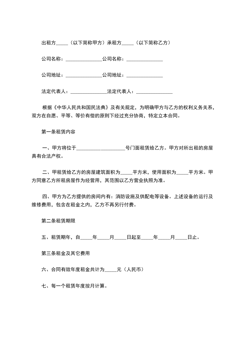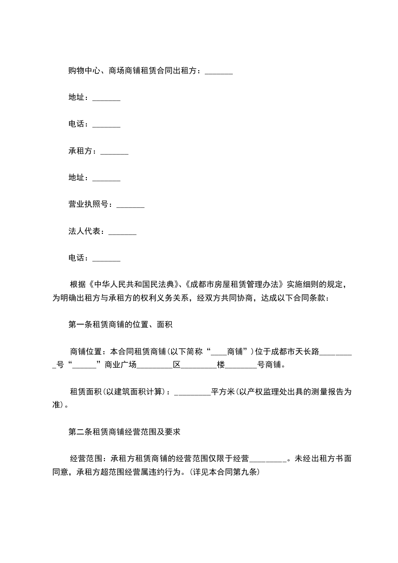 第一条房屋坐落地址甲方出租的商铺坐落地址:_______________号,建筑面积_____平方米。