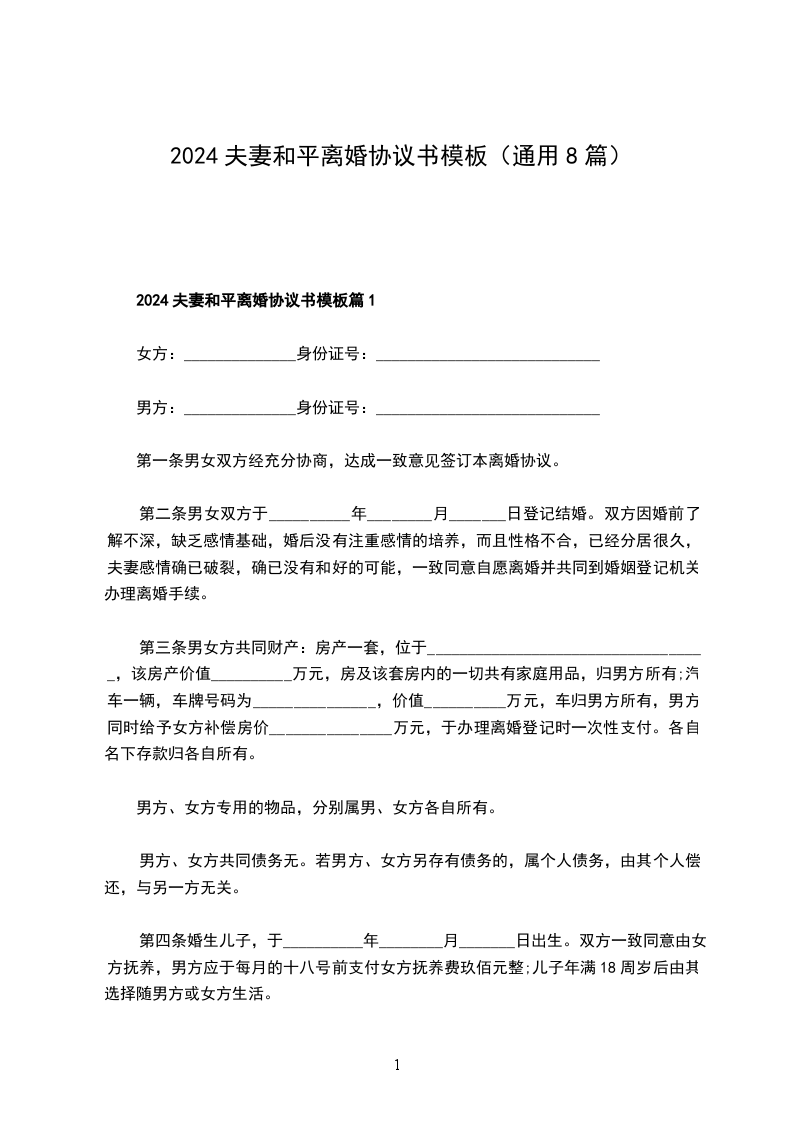 2024夫妻和平协议离婚范本篇8