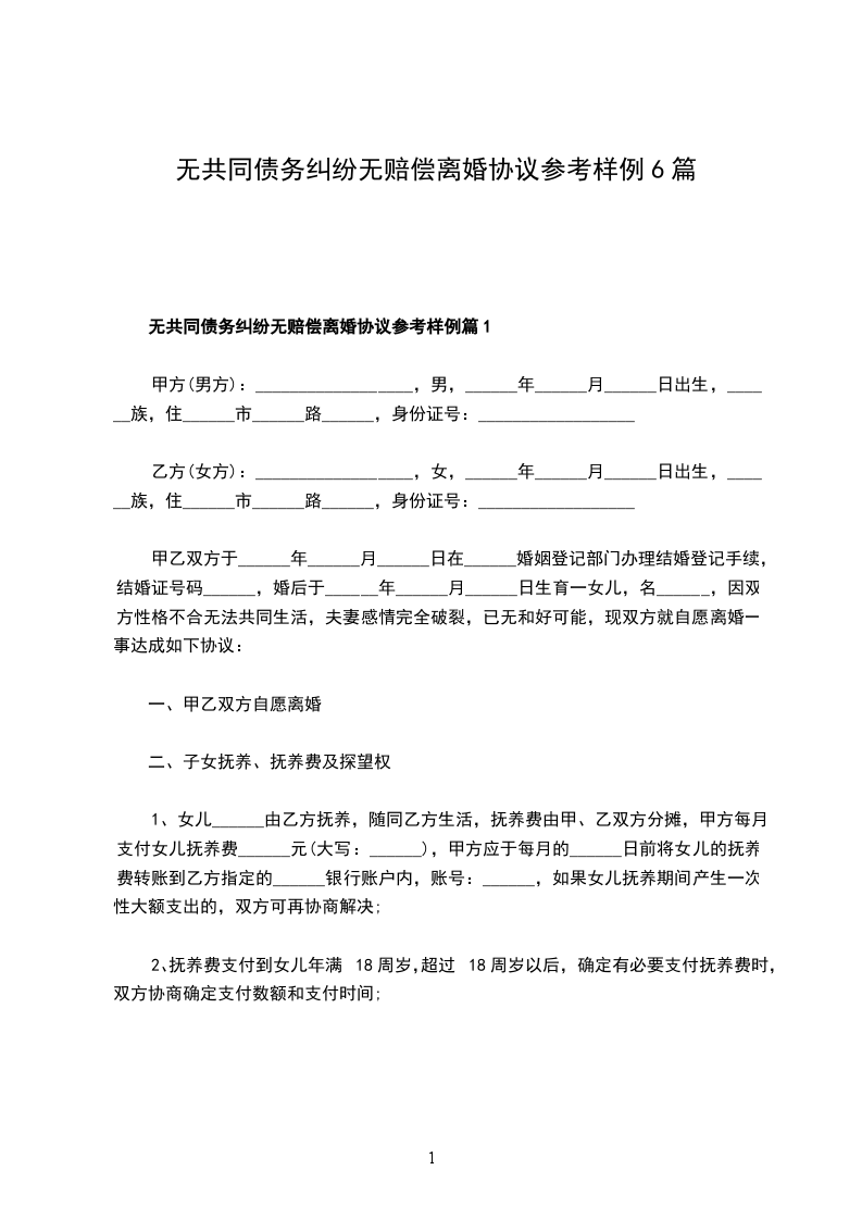 无债务纠纷无赔偿协议离婚书格式篇6