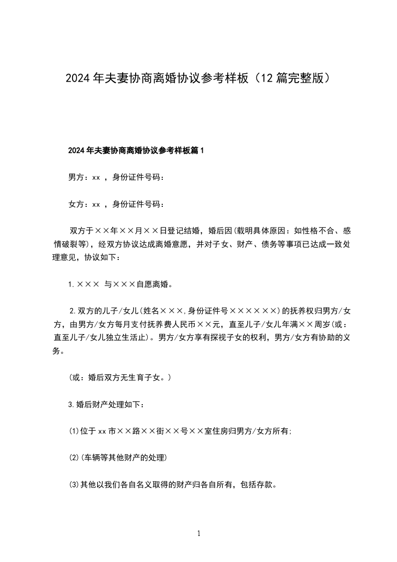 2024夫妻协商离婚协议参考样本篇12