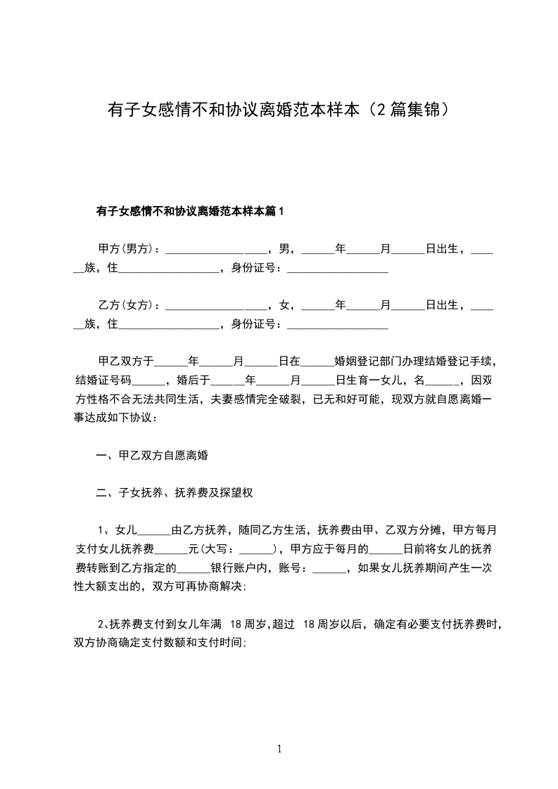 有婚生子感情不和离婚协议篇1
