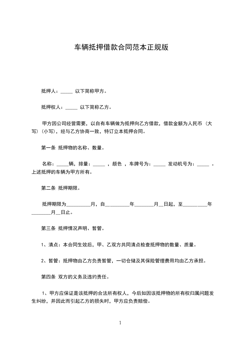 甲方因公司经营需要,以自有车辆做为抵押向乙方借款,借款金额为人民币 (大写) (小写),经与乙方协商一致,特订立本抵押合同。
