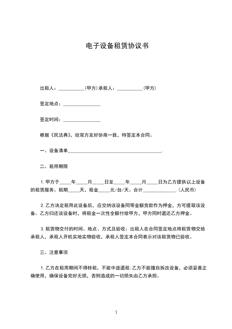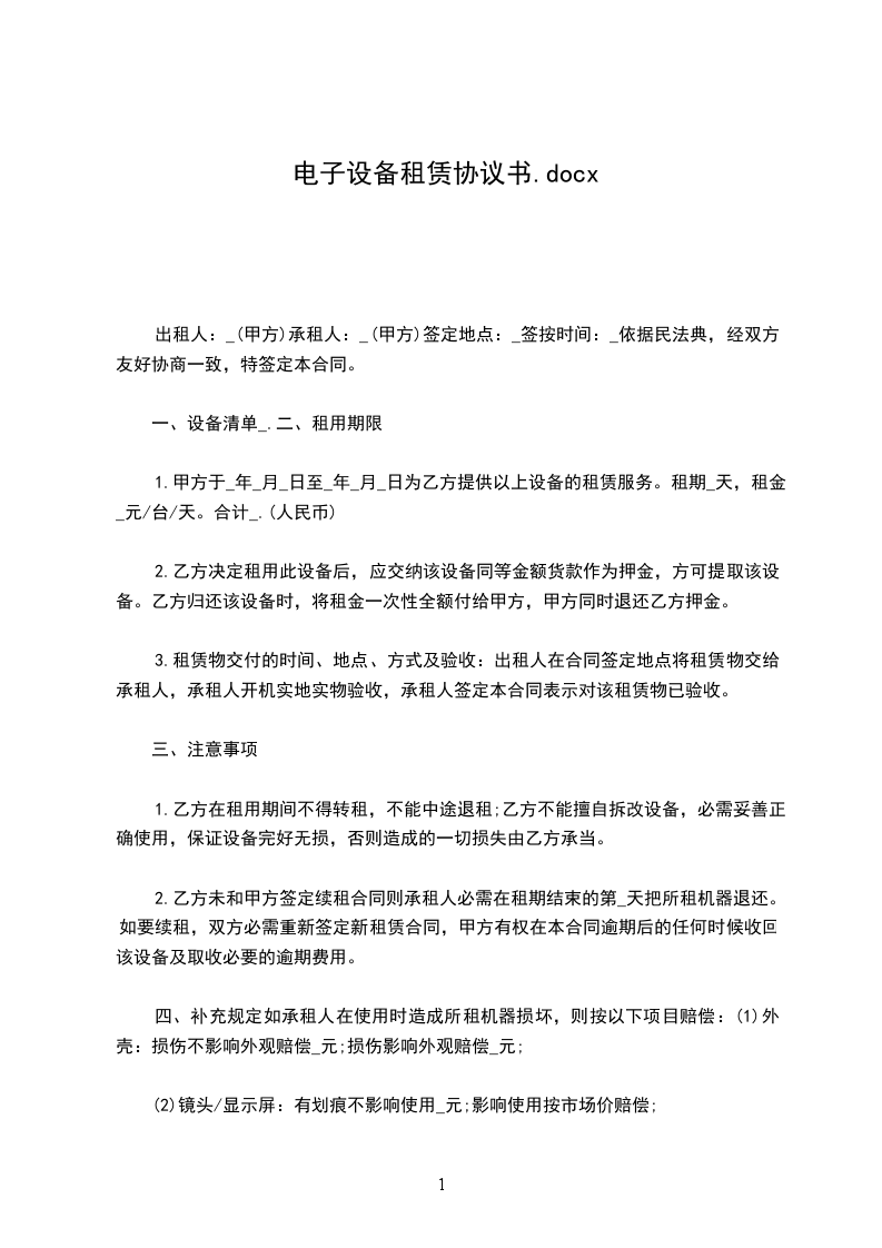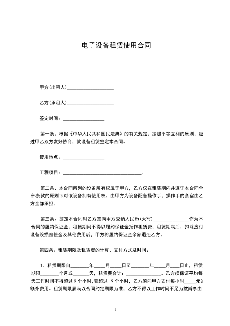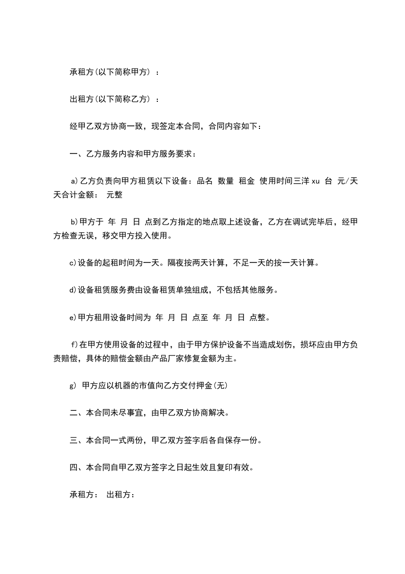 1.甲方于_____年_____月_____日至_____年_____月_____日为乙方提供以上设备的租赁服务。租期_____天,租金_____元/台/天。合计______________.(人民币)