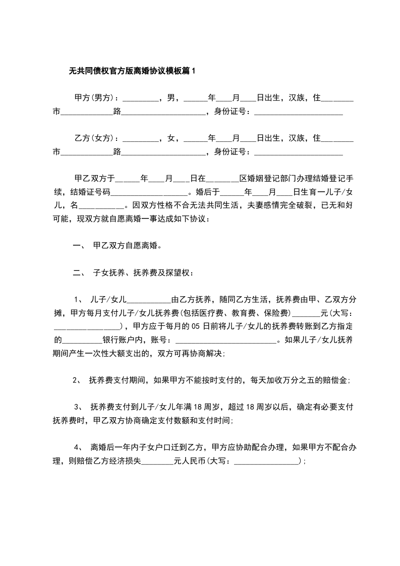 1、甲乙双方确认在婚姻关系存续期间没有发生共同债务。