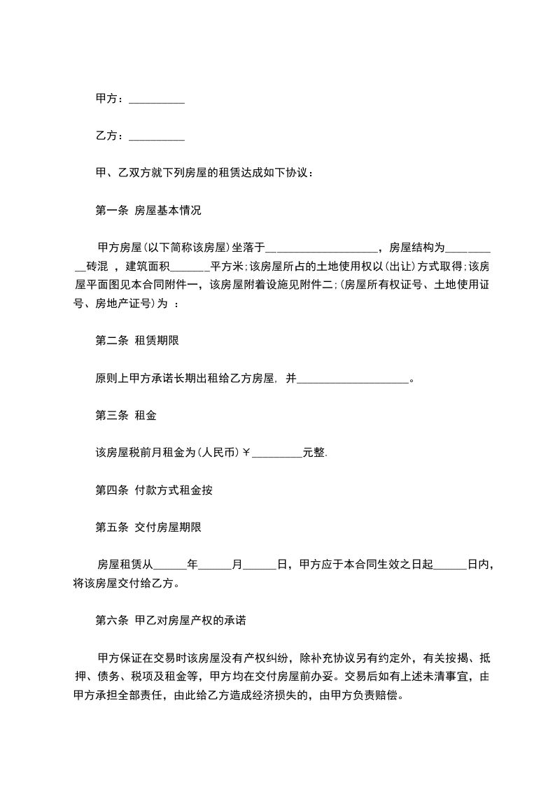 原则上甲方承诺长期出租给乙方房屋, 并____________________。