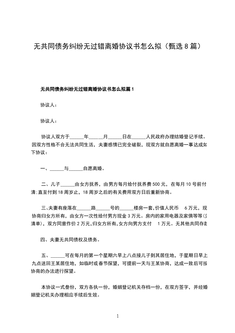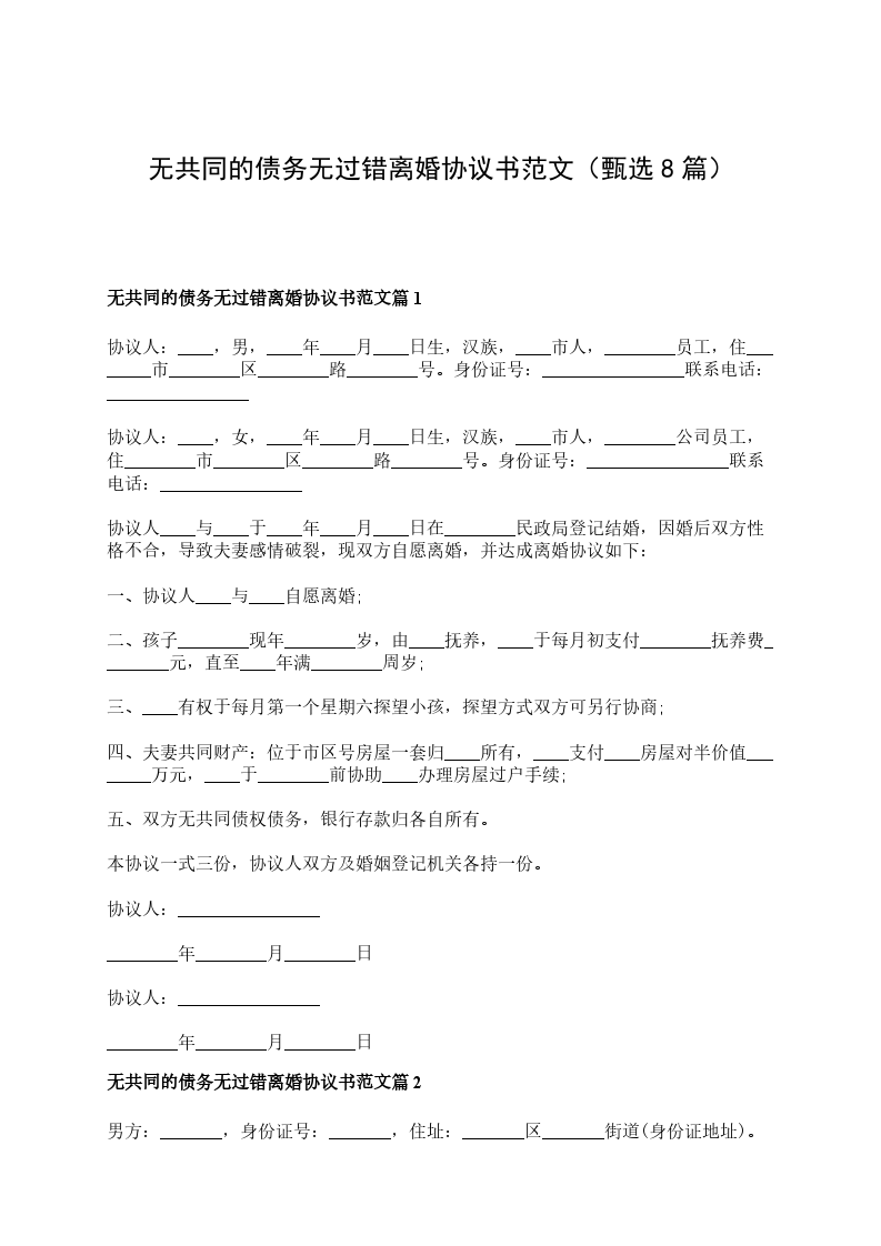 无共同债权无过错离婚协议书参考样式篇8