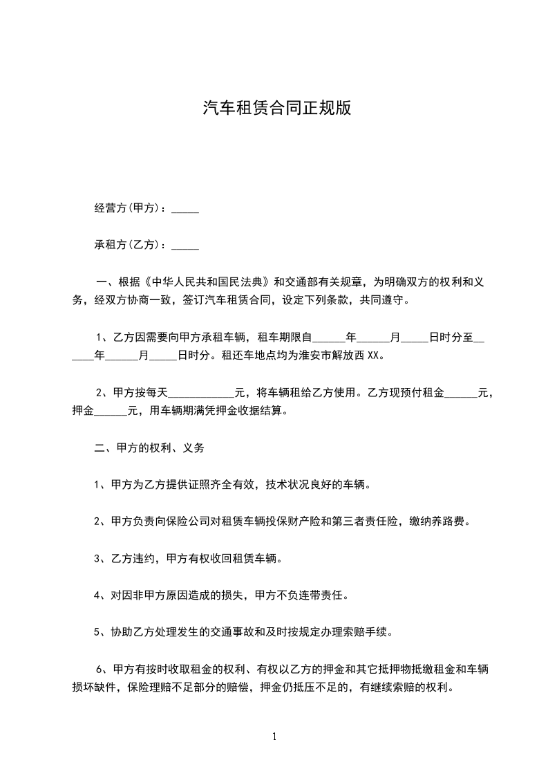 一、根据《中华人民共和国民法典》和交通部有关规章,为明确双方的权利和义务,经双方协商一致,签订汽车租赁合同,设定下列条款,共同遵守。